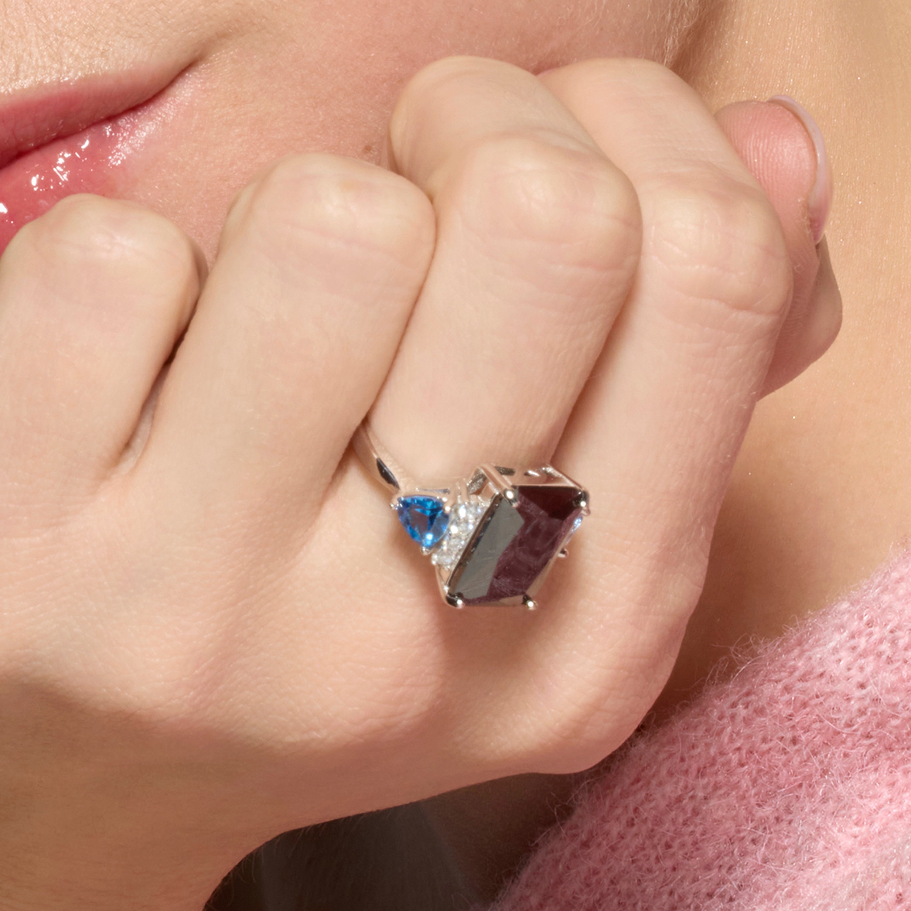 Anillo Arwu de Plata de Ley 925 y Cuarzo Hidrotermal Onix acabado rodio