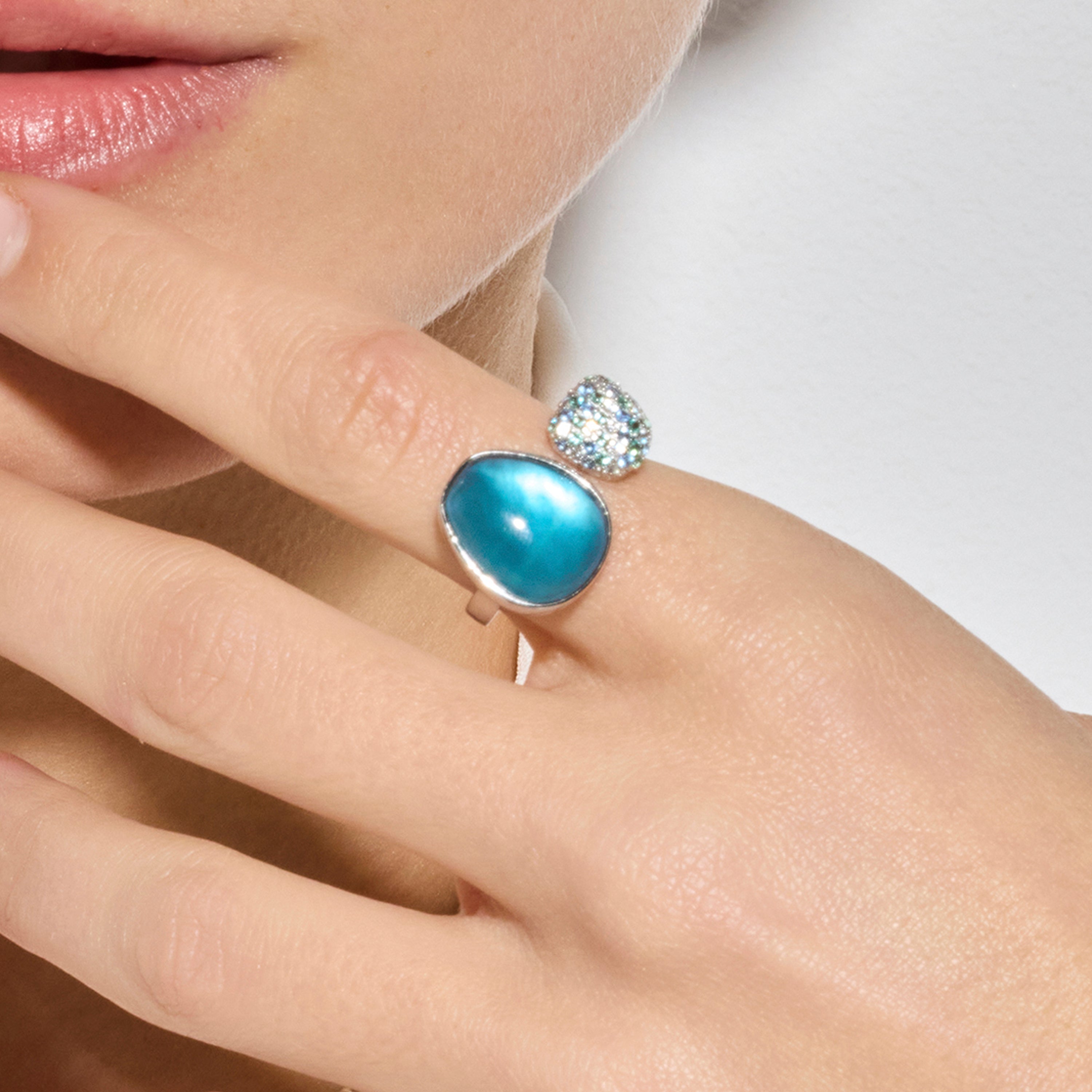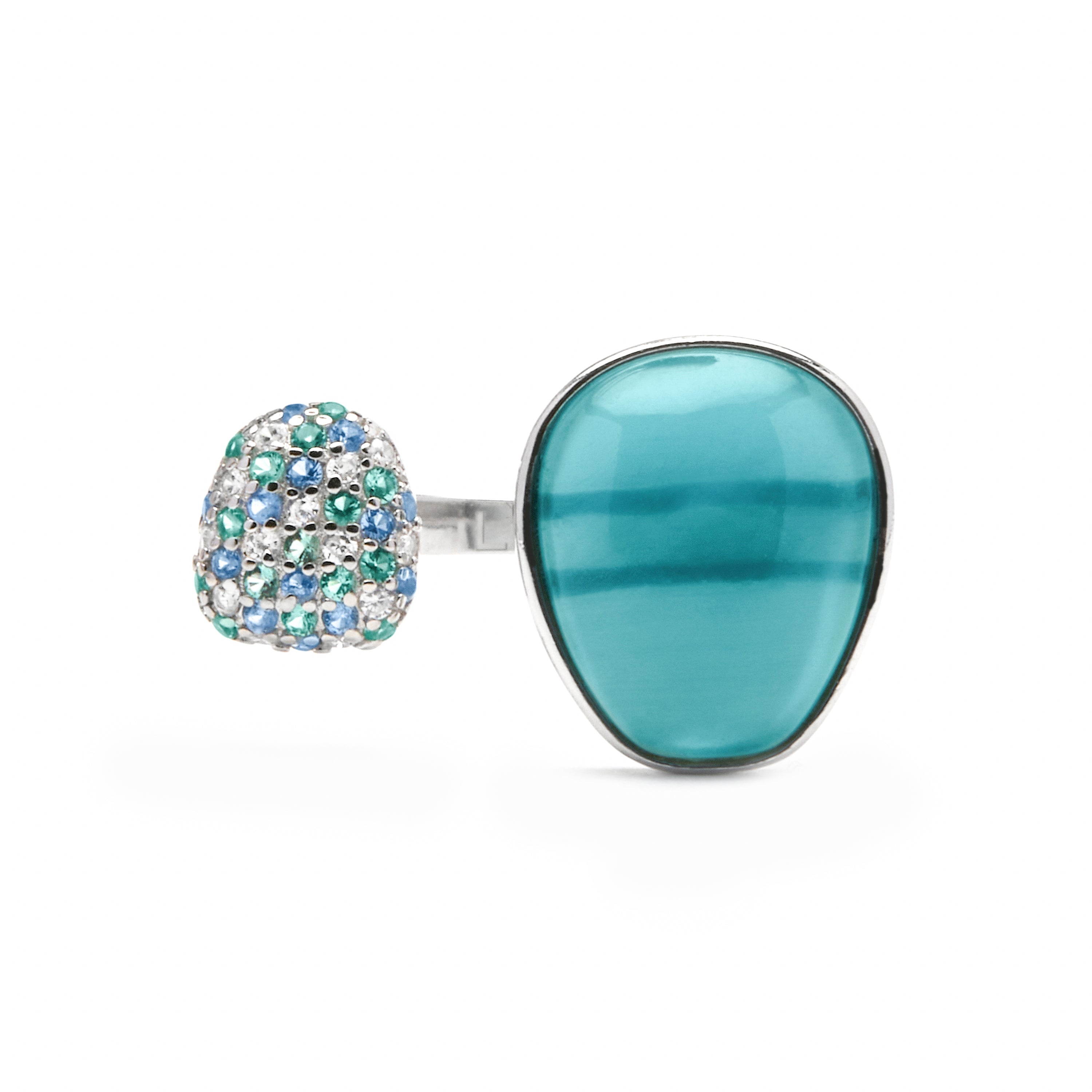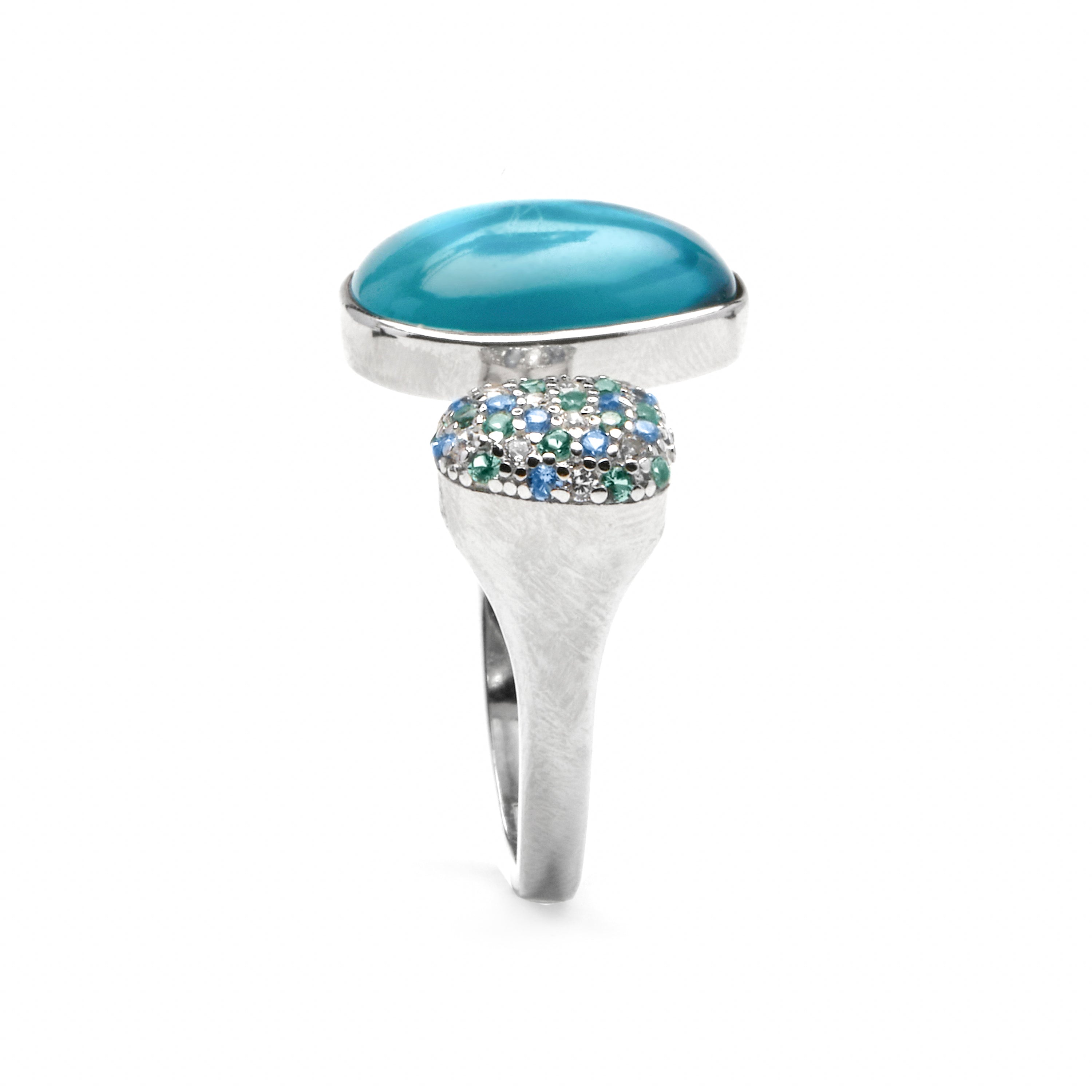 Anillo de Plata de Ley 925 y Doblete Hematite / Cristal Azul acabado rodio - Furesh
