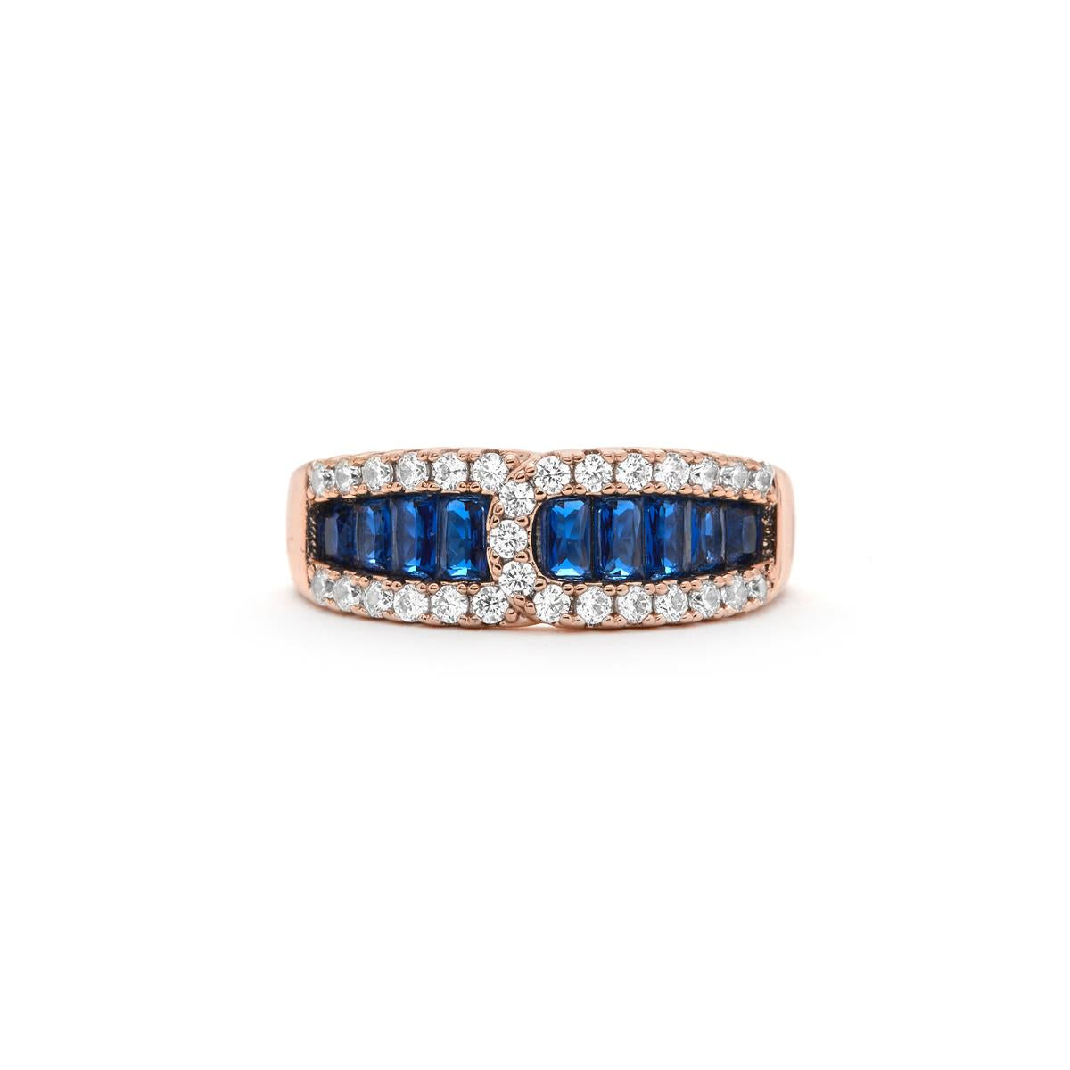 Anillo Guine de Circonita Zafiro acabado en oro amarillo 18k