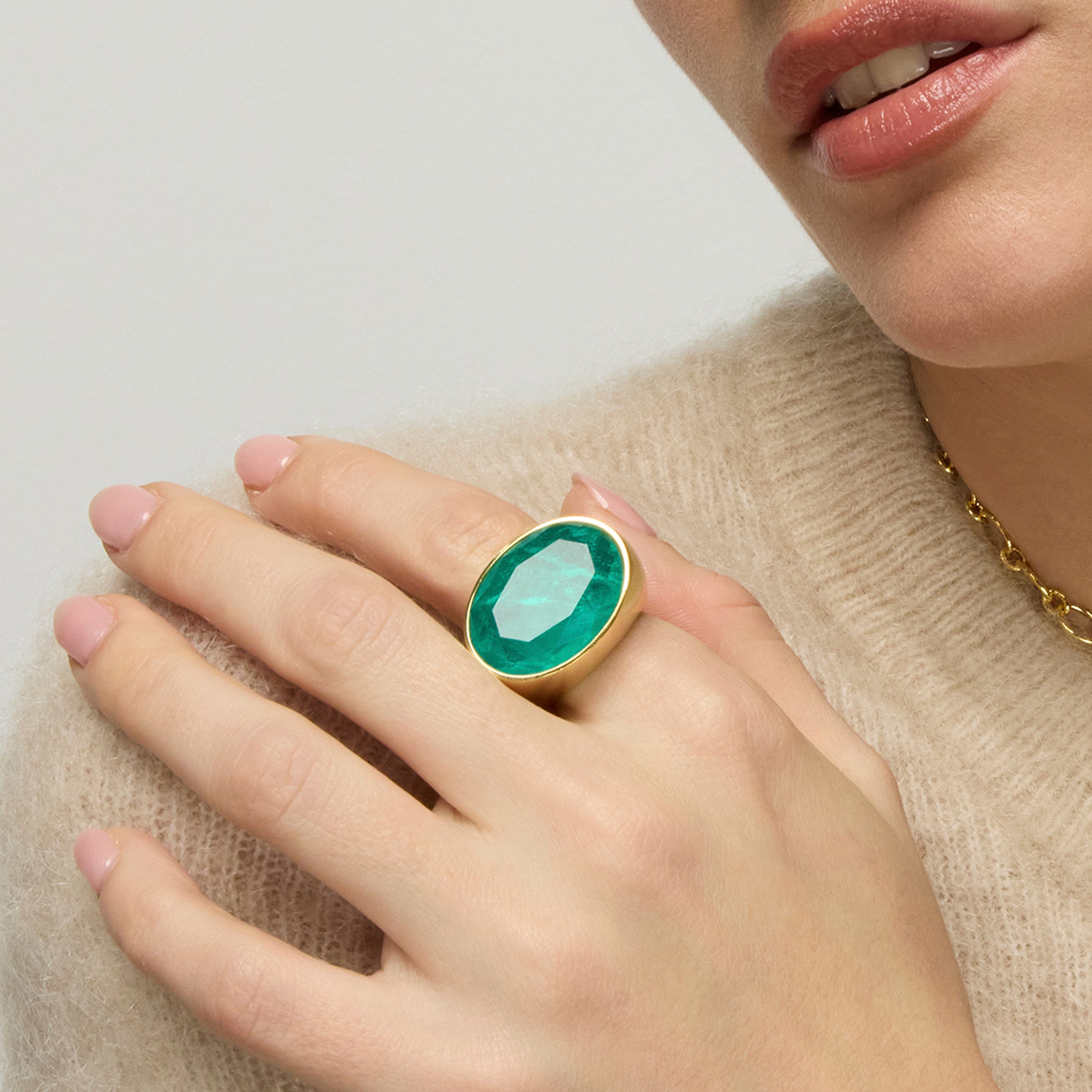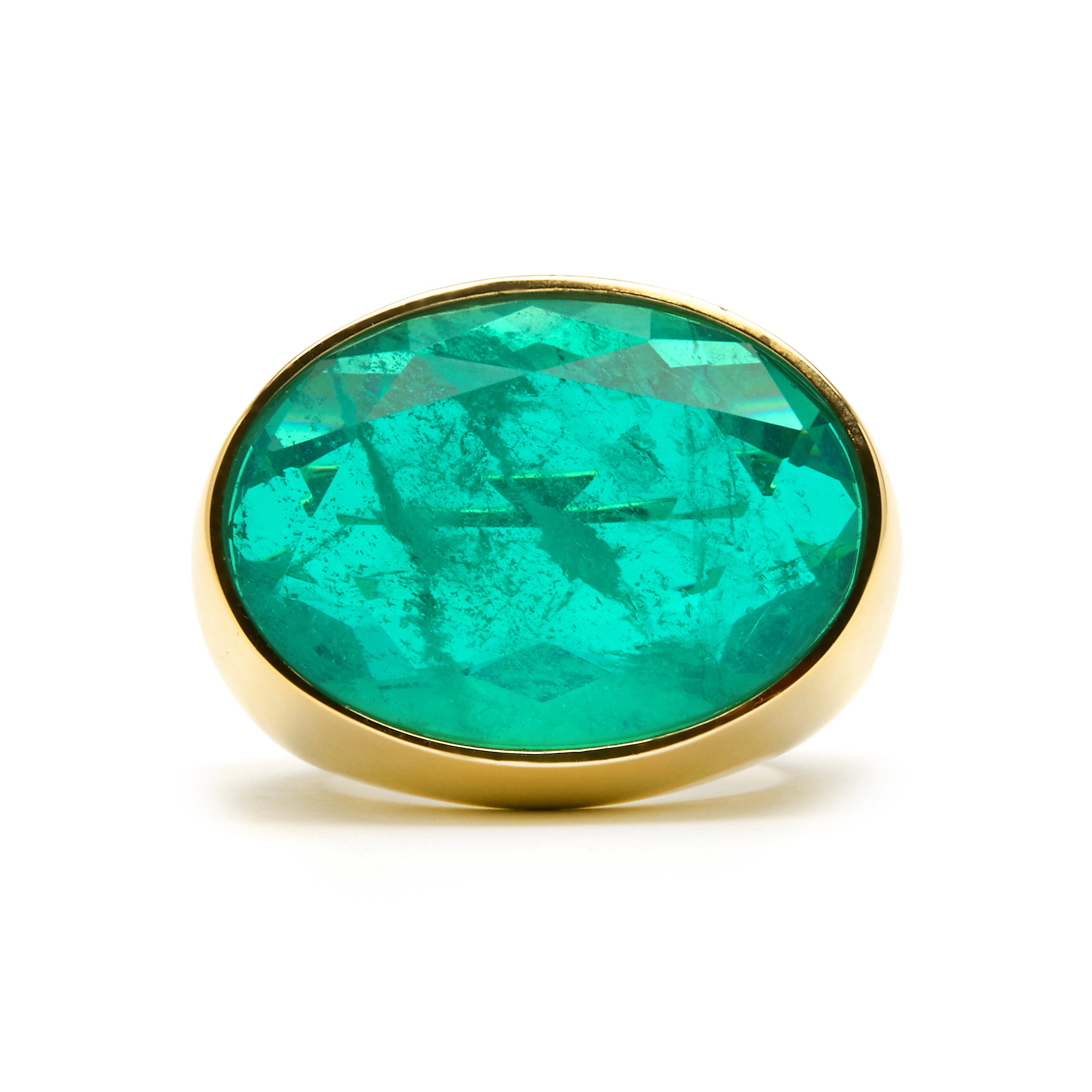 Anillo Jadir de Plata de Ley 925 y Circonita Verde acabado oro amarillo de 18k