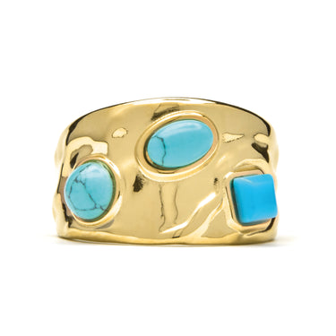Anillo acabado oro amarillo de 18k y Turquesa - Rekbas