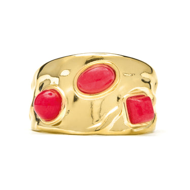 Anillo acabado oro amarillo de 18k y Coral - Rekbas