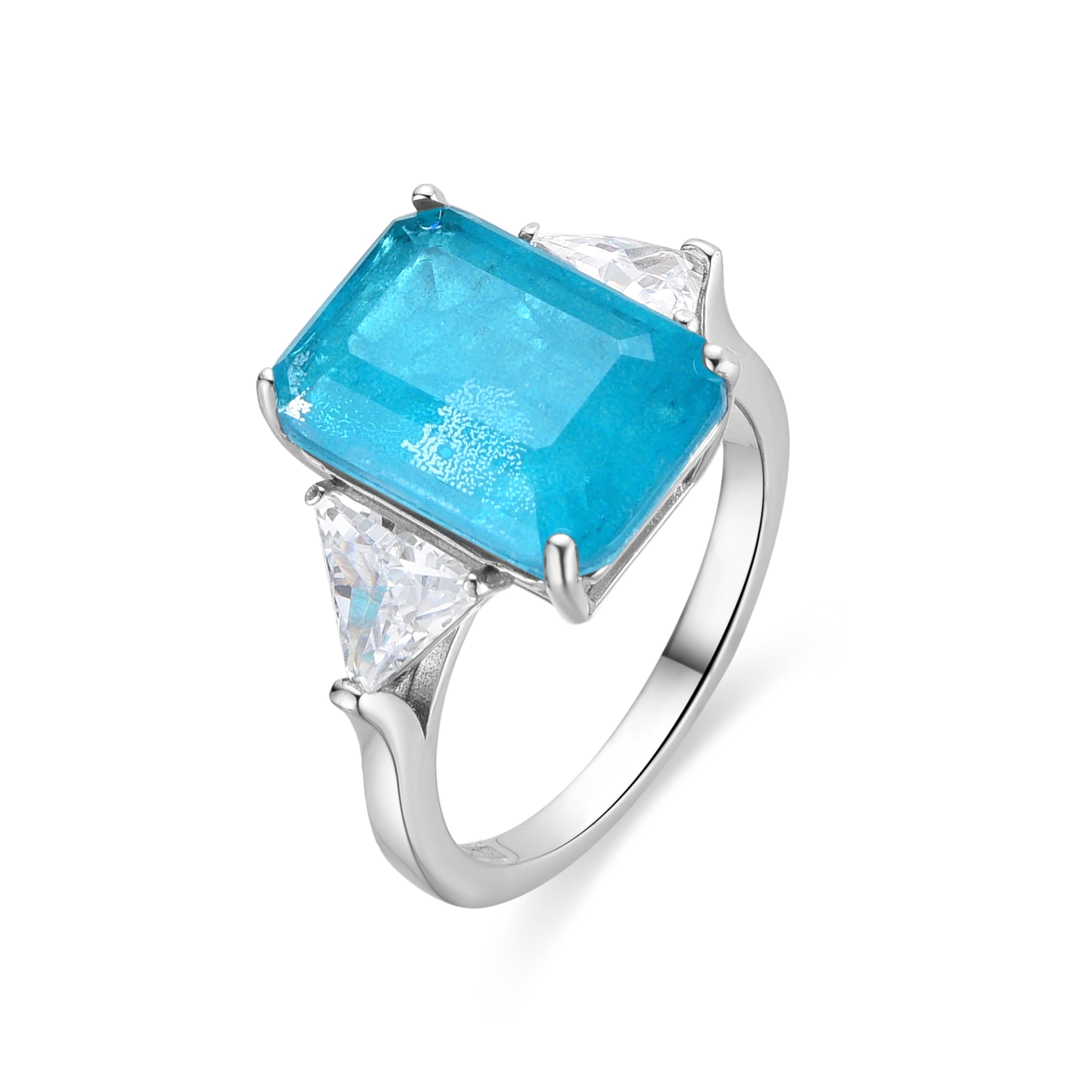 Anillo de Plata de Ley 925 y Cuarzo Hidrotermal Verde Paraiba acabado rodio - Wiko