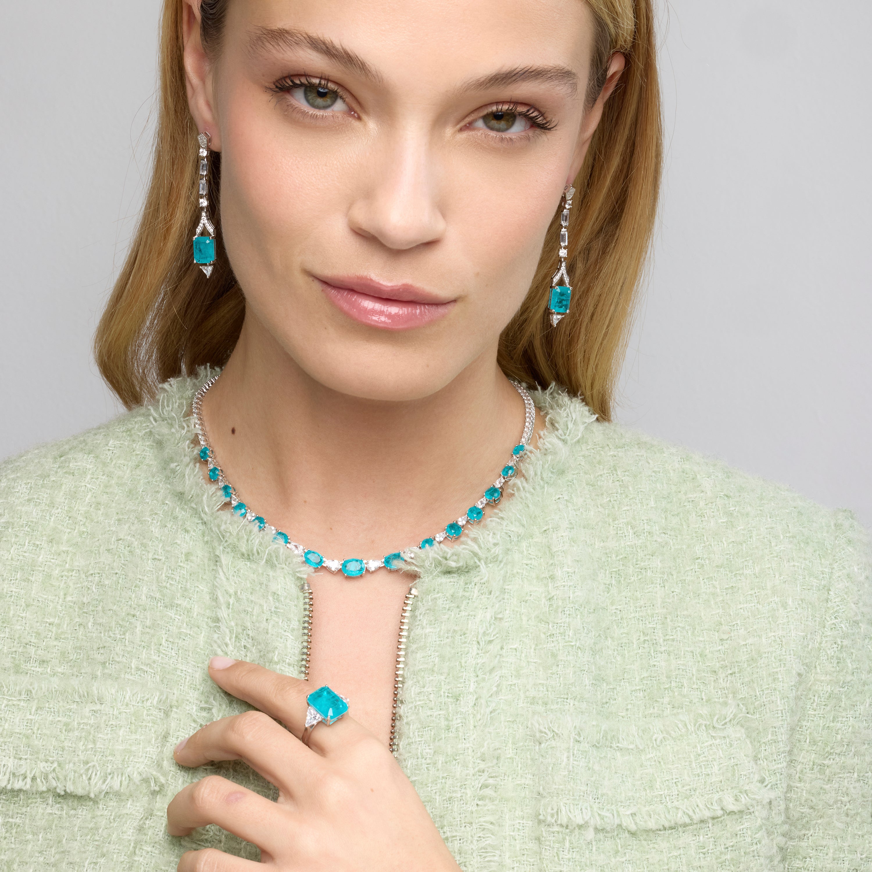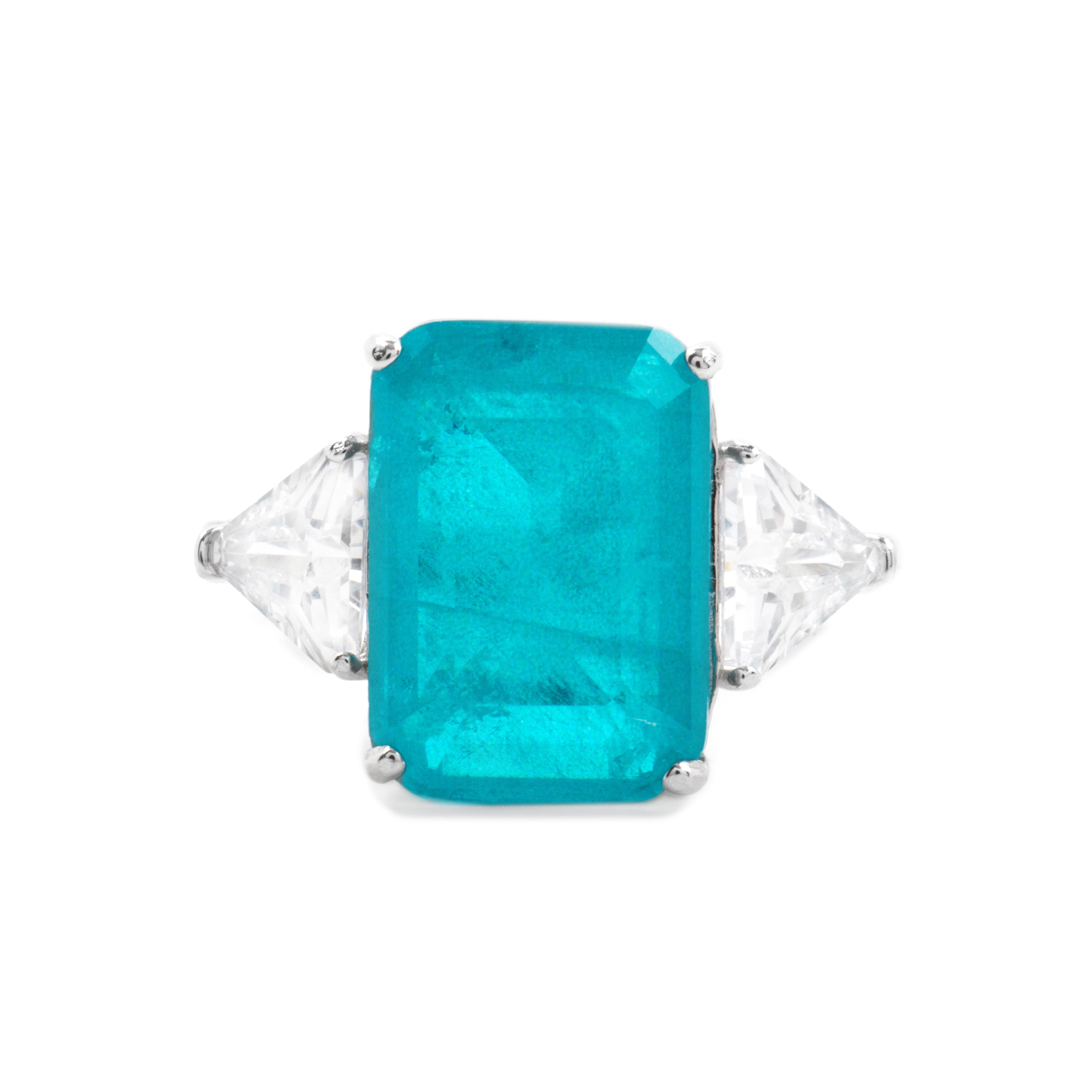 Anillo Wiko de Plata de Ley 925 y Cuarzo Hidrotermal Verde Paraiba acabado rodio