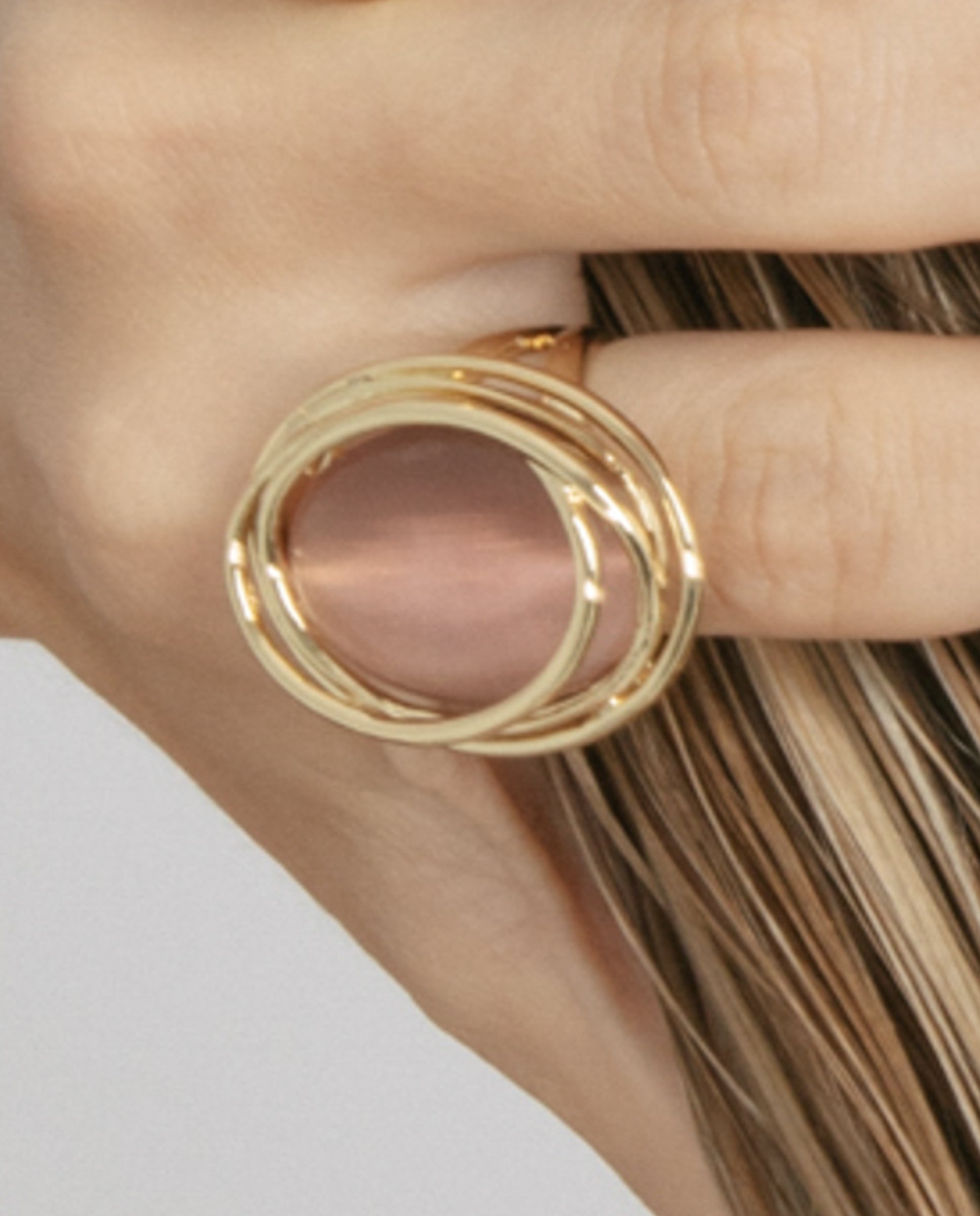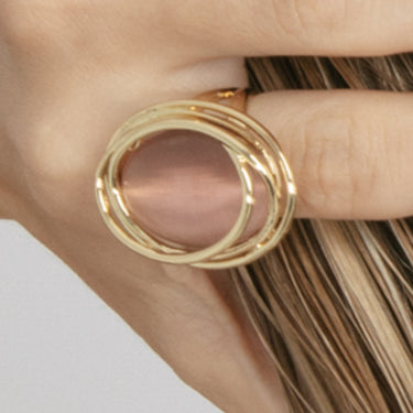 Anillo de Ojo de Gato Marron acabado en oro amarillo de 18k - Tijahu