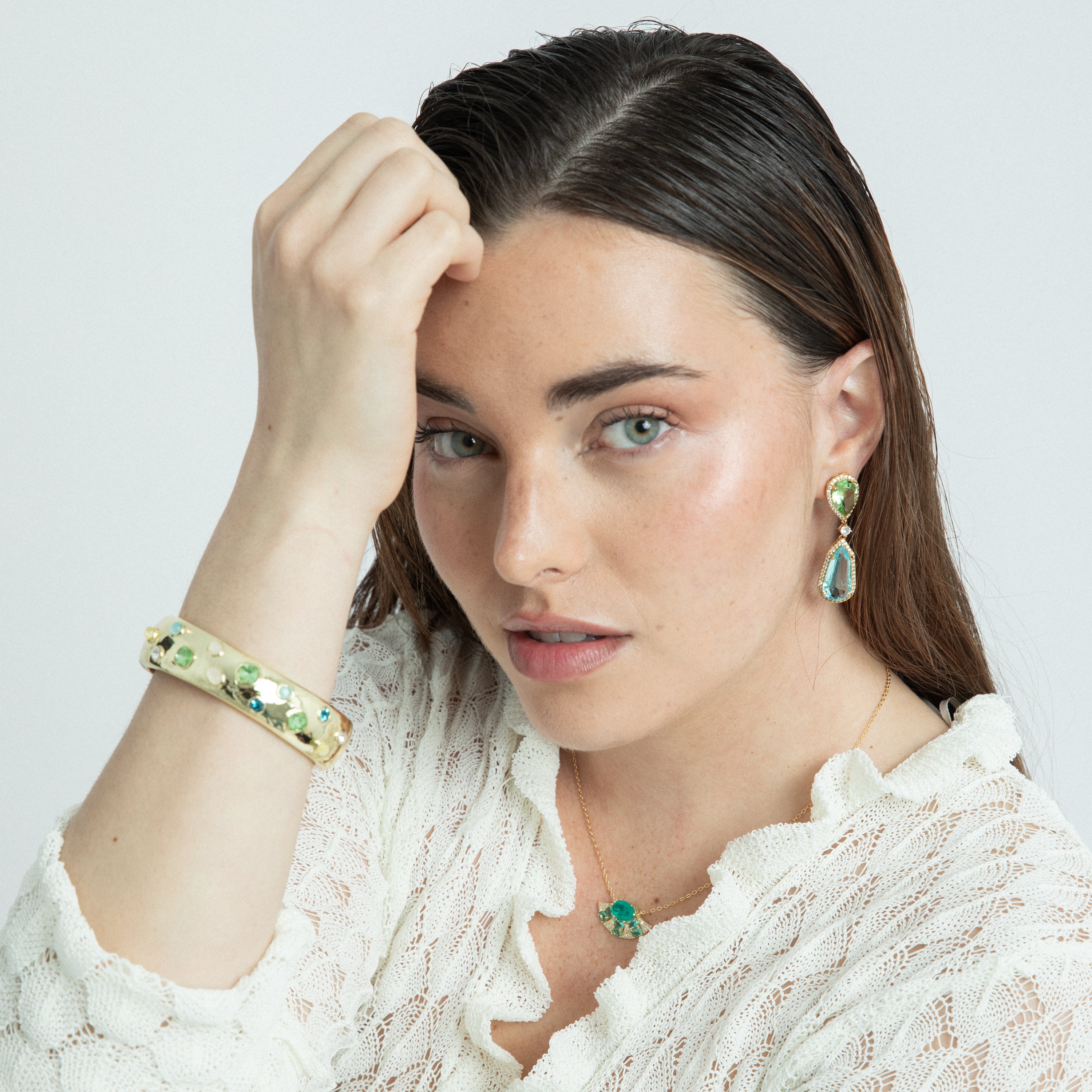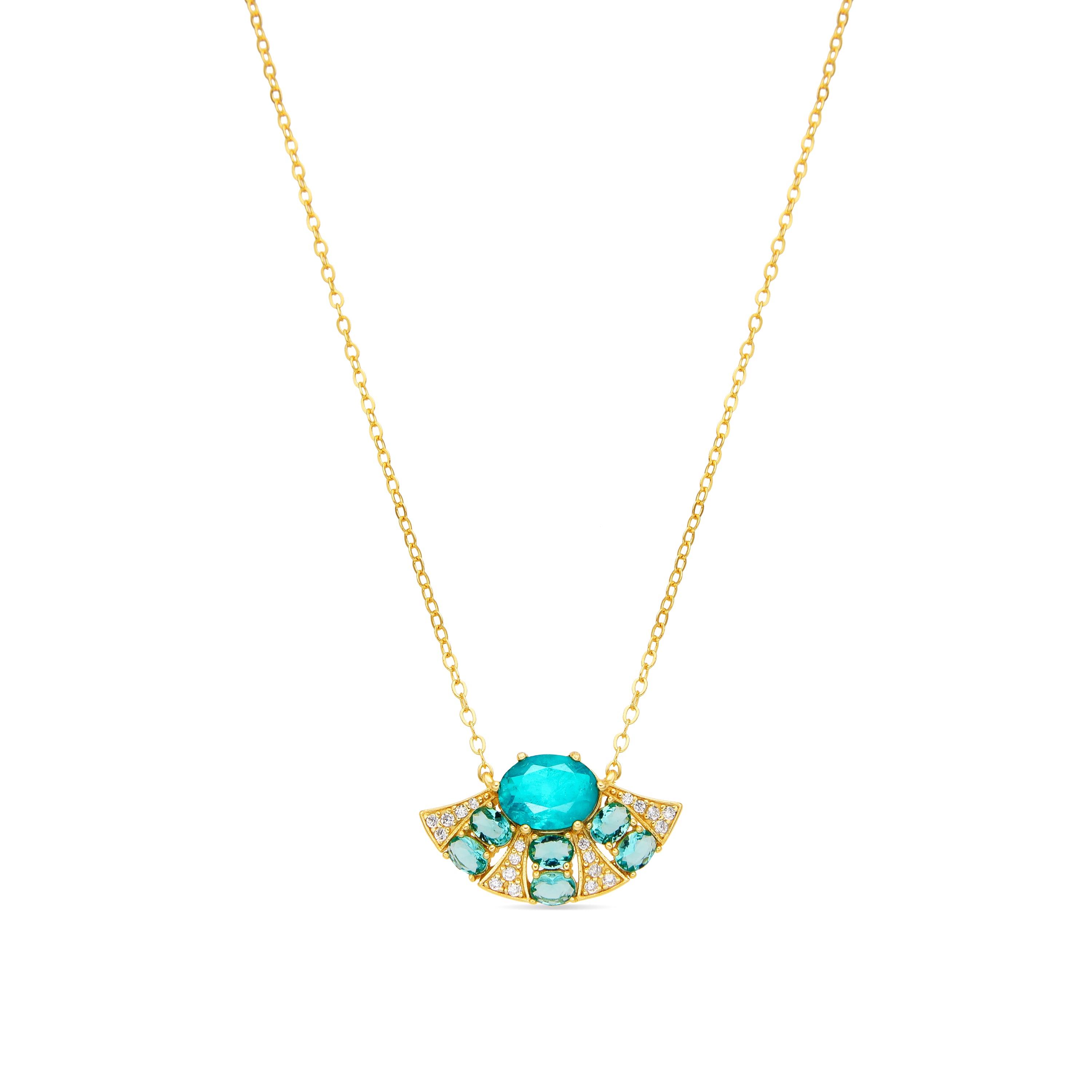Collar Kioly de Plata de Ley 925 y Cuarzo Hidrotermal Verde Paraiba acabado oro amarillo de 18k