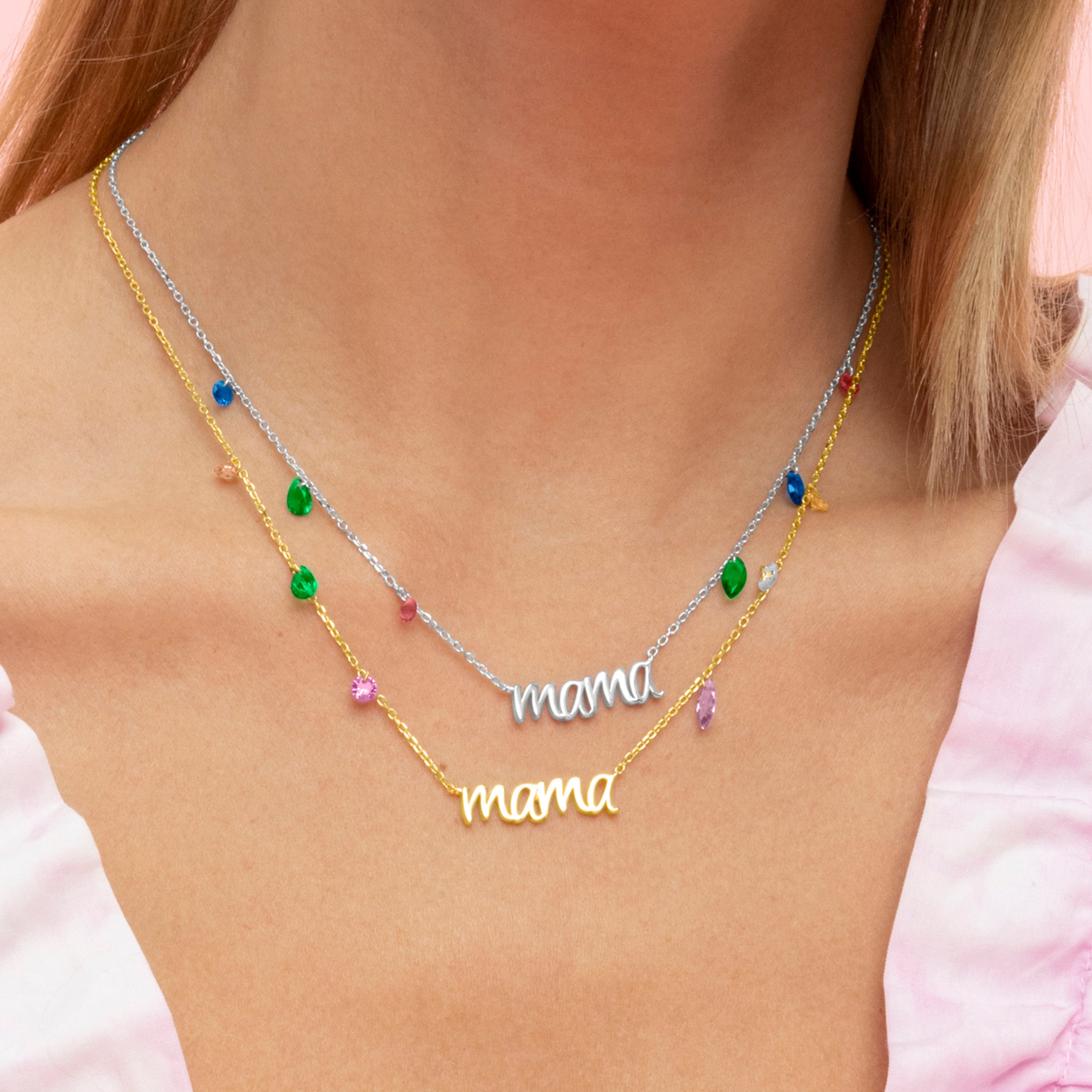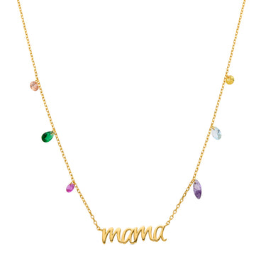 Collar Mama De plata De Ley 925 con Circonita Multicolor acabado oro 18k. Essential encarna la sencillez refinada, piezas atemporales con líneas suaves y el brillo adicional de las circonitas. Joyas básicas sin pretensiones que son perfectas para el uso diario, pero también pueden funcionar en ocasiones especiales.