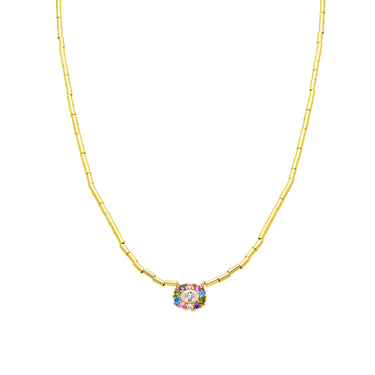 Collar Mezay de Plata de Ley 925 y Circonita Multicolor acabado oro amarillo de 18k