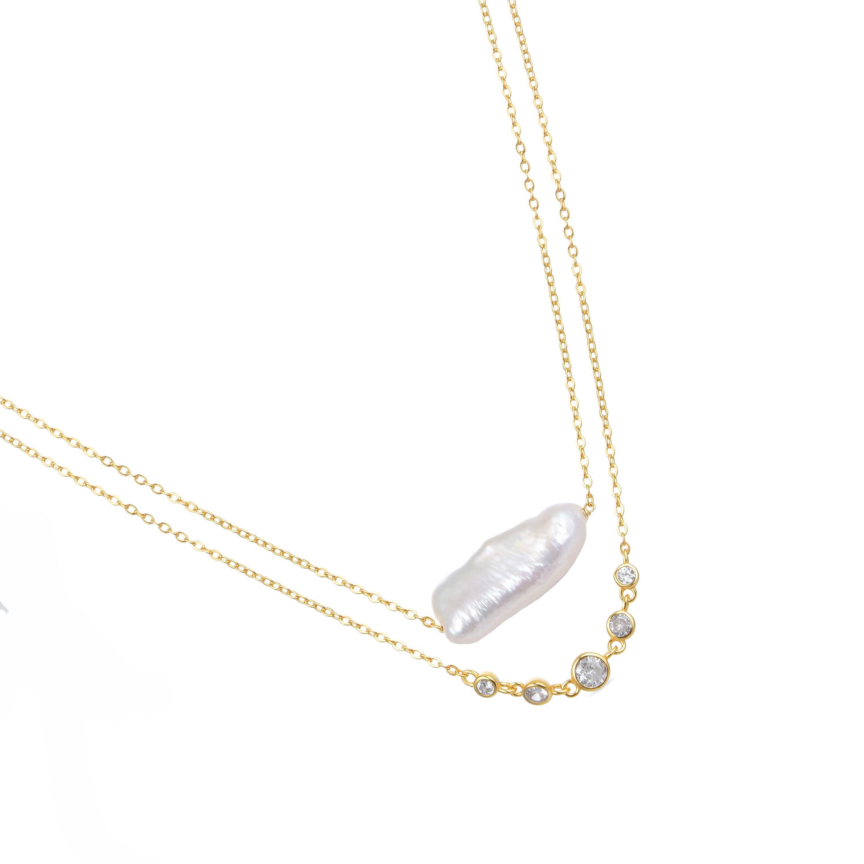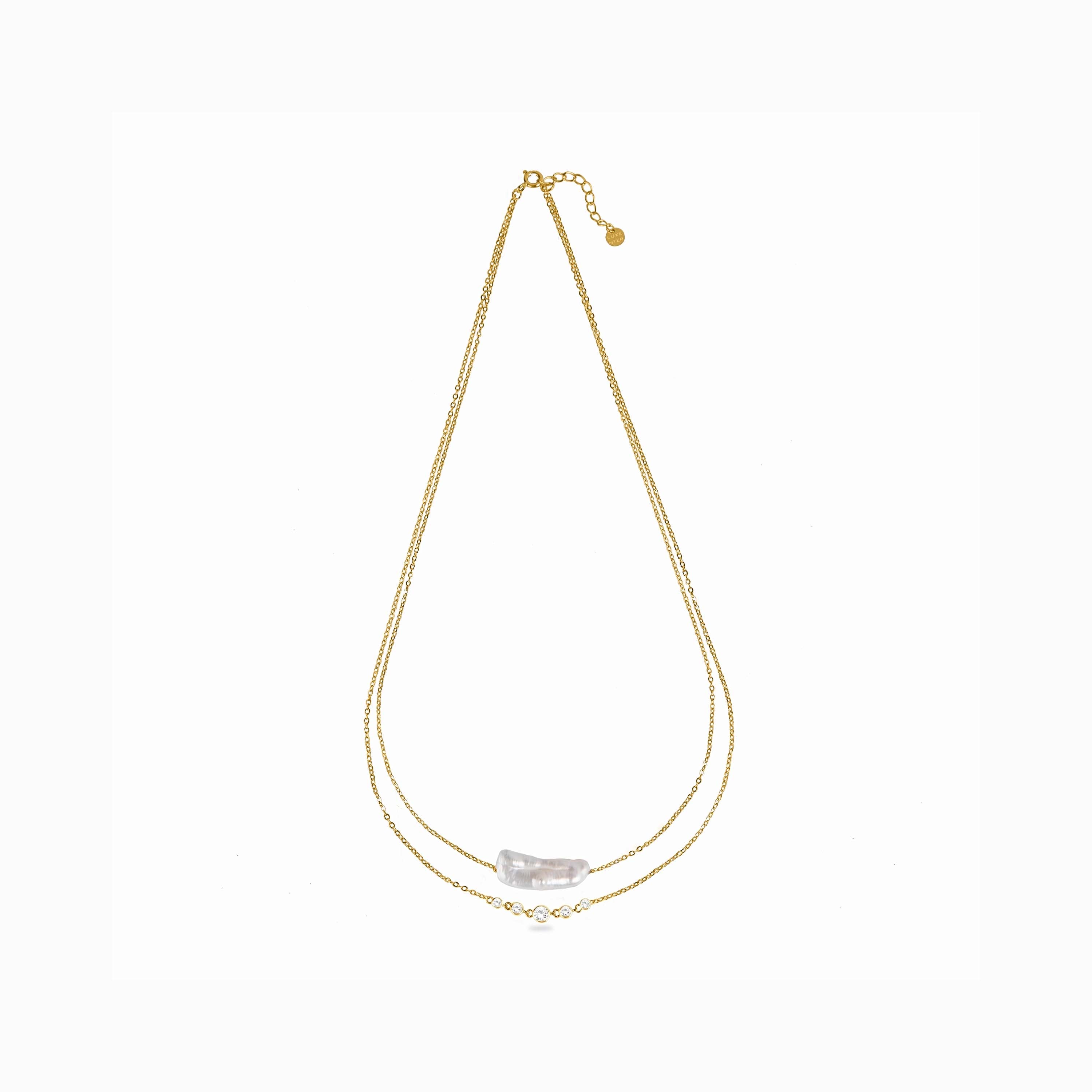 Collar de Plata de Ley 925 con Perla Blanca acabado en oro amarillo de 18K - Danysda