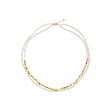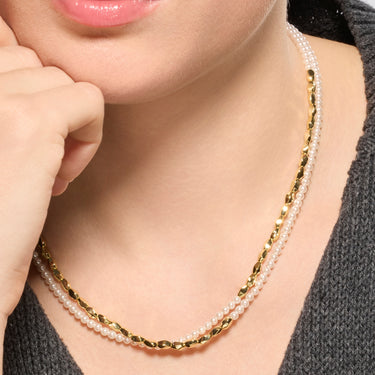 Collar de Plata de Ley 925 y Perla Blanca acabado oro amarillo de 18k - Noma