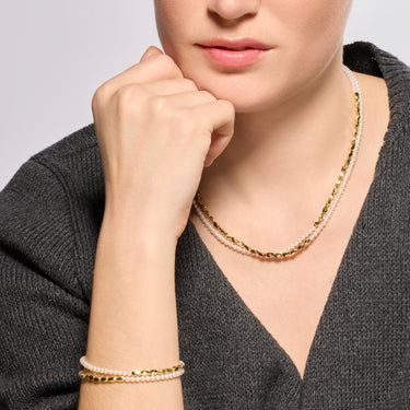 Collar Noma de Plata de Ley 925 y Perla Blanca acabado oro amarillo de 18k