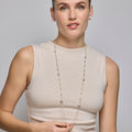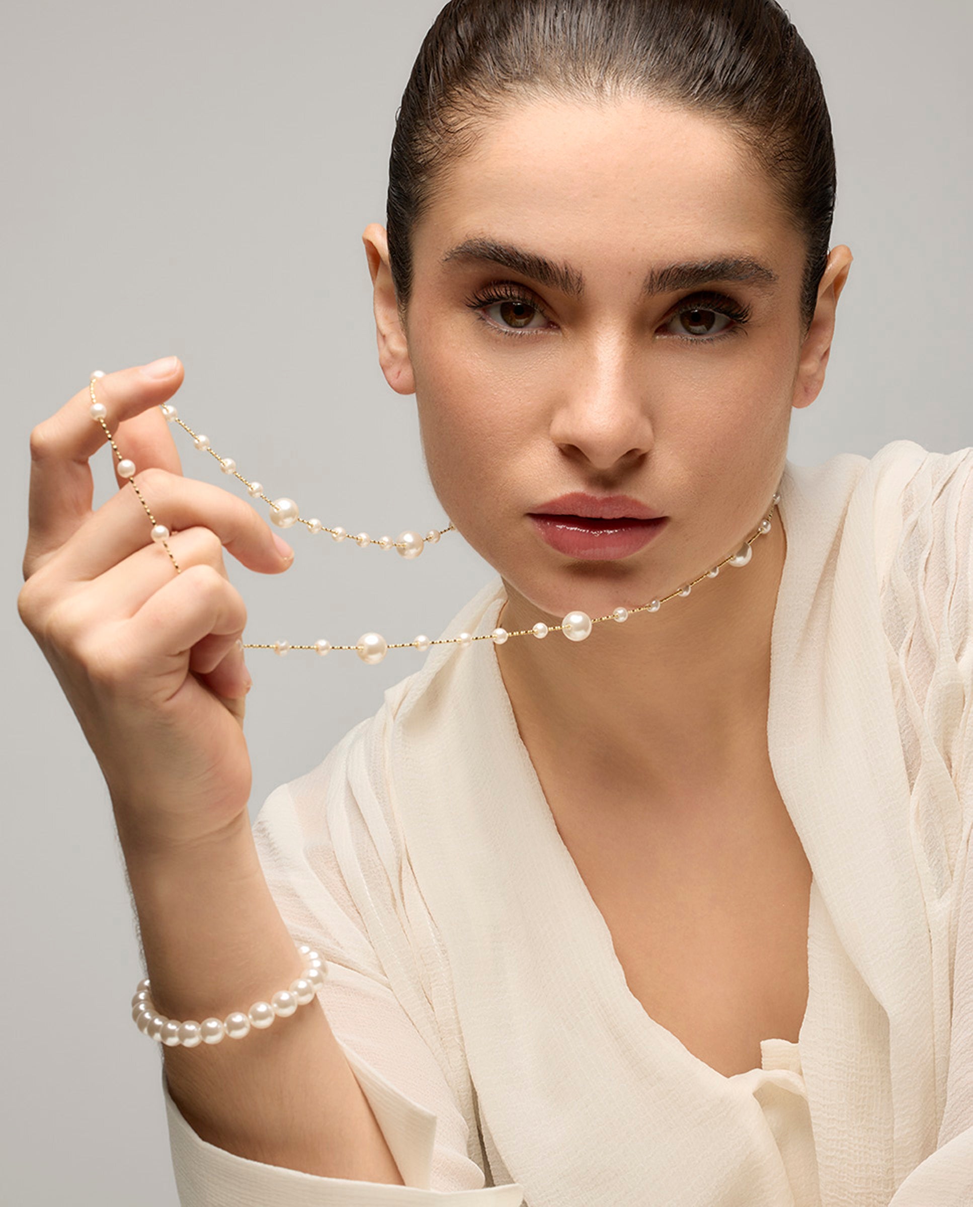 Collar Xyaz con Perla Blanca acabado oro 18k. Essential encarna la sencillez refinada, piezas atemporales con líneas suaves y el brillo adicional de las circonitas. Joyas básicas sin pretensiones que son perfectas para el uso diario, pero también pueden funcionar en ocasiones especiales.