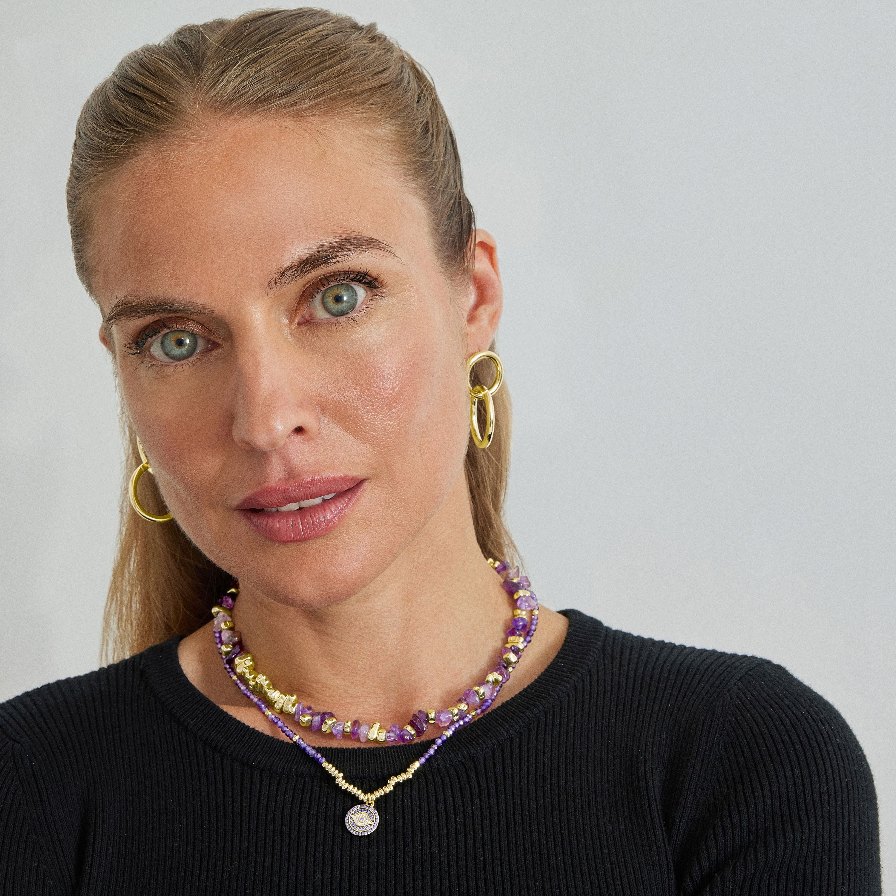 Collar de Amatista Natural acabado en oro amarillo de 18K - Sygo