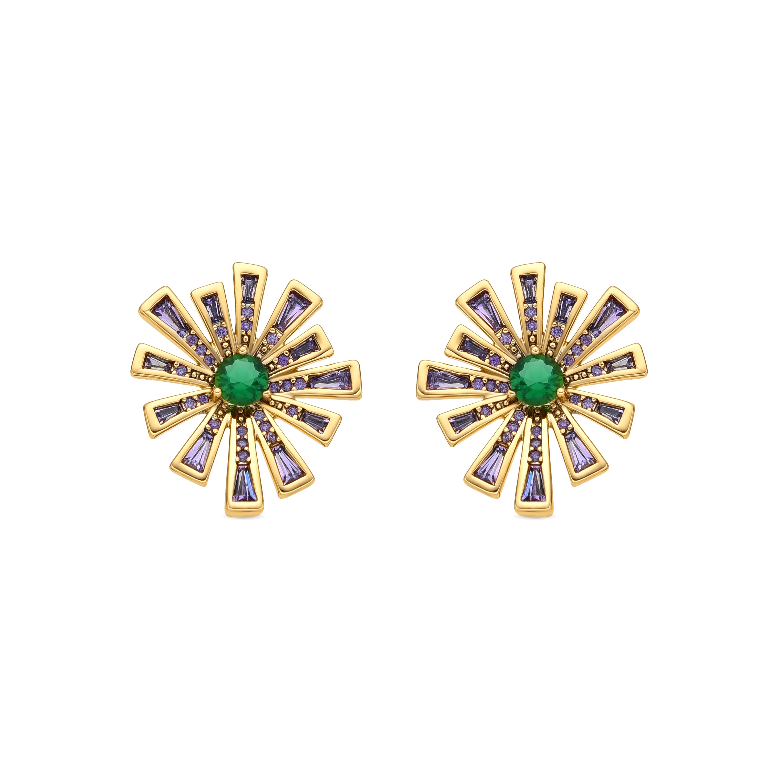 Pendientes acabado oro amarillo de 18k y Circonita Multicolor - Asail