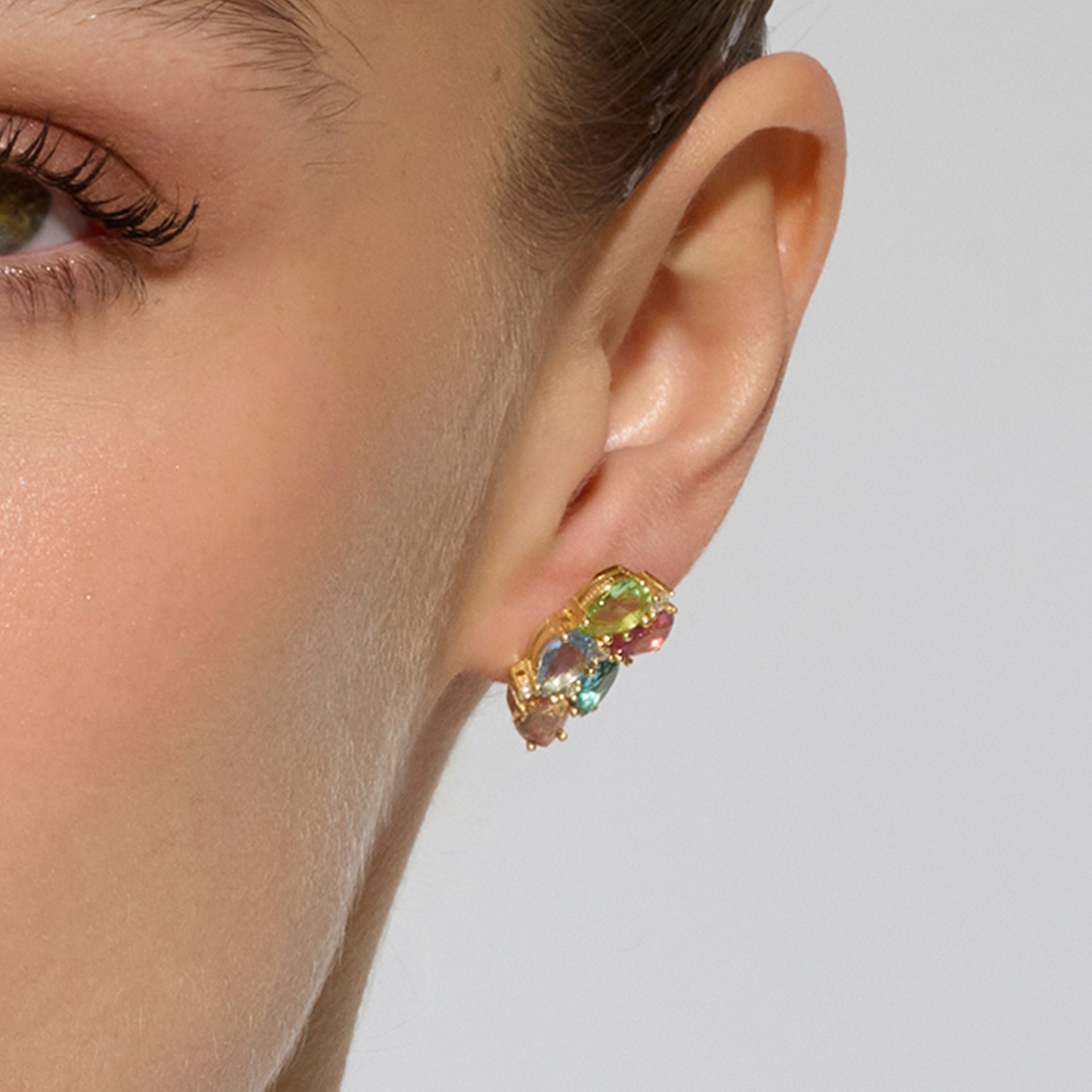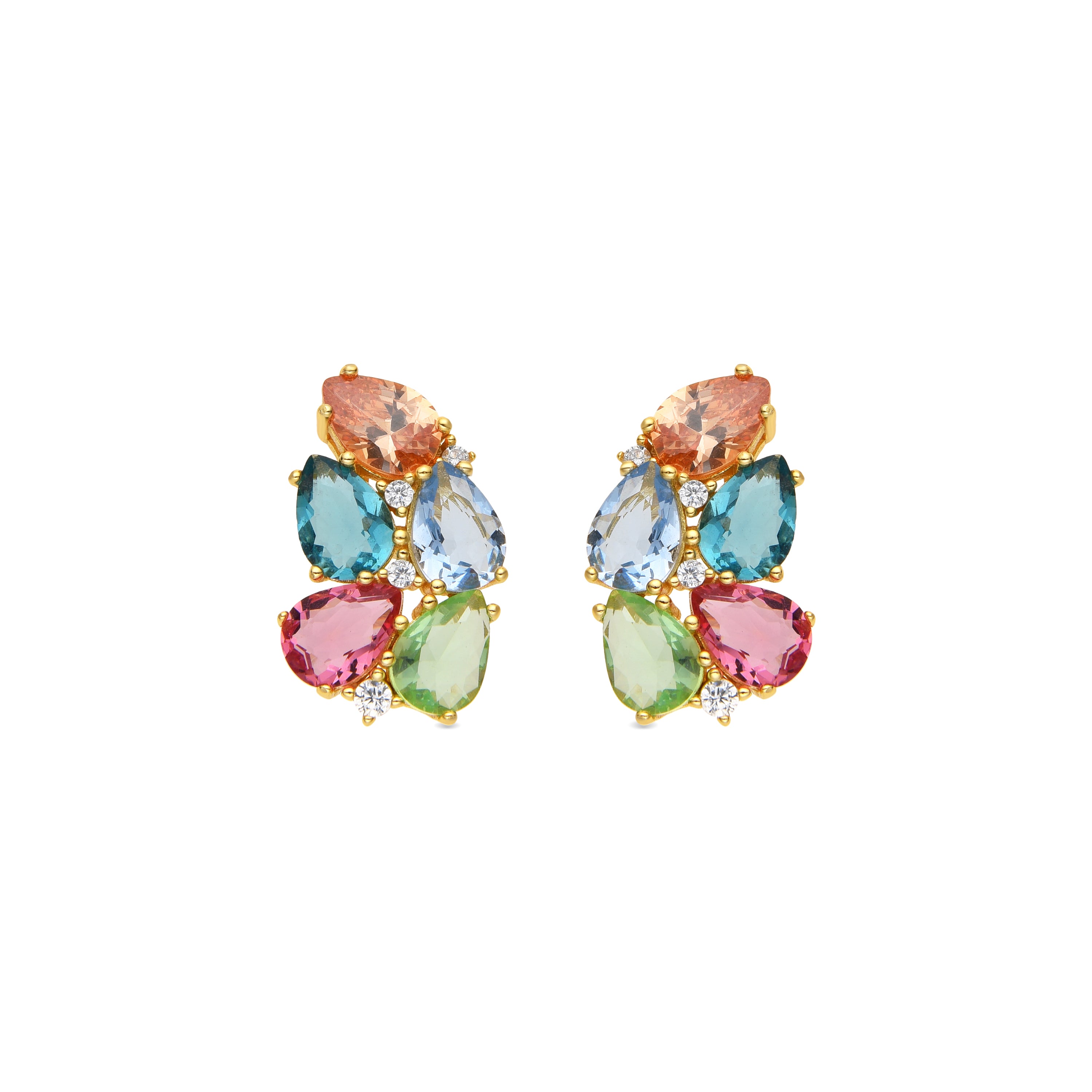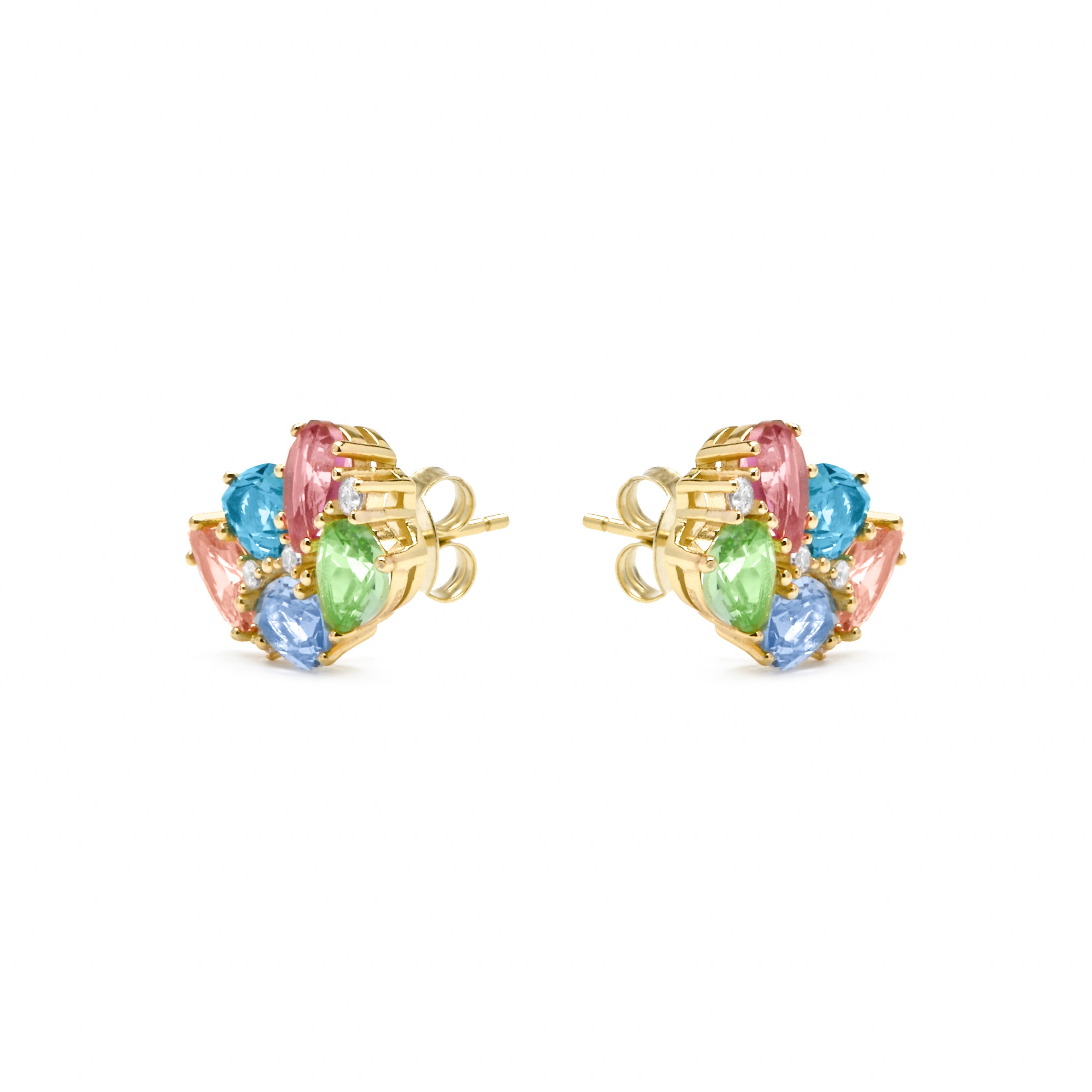 Pendientes Damam de Plata de Ley 925 y Cuarzo Hidrotermal Multicolor acabado oro amarillo de 18k