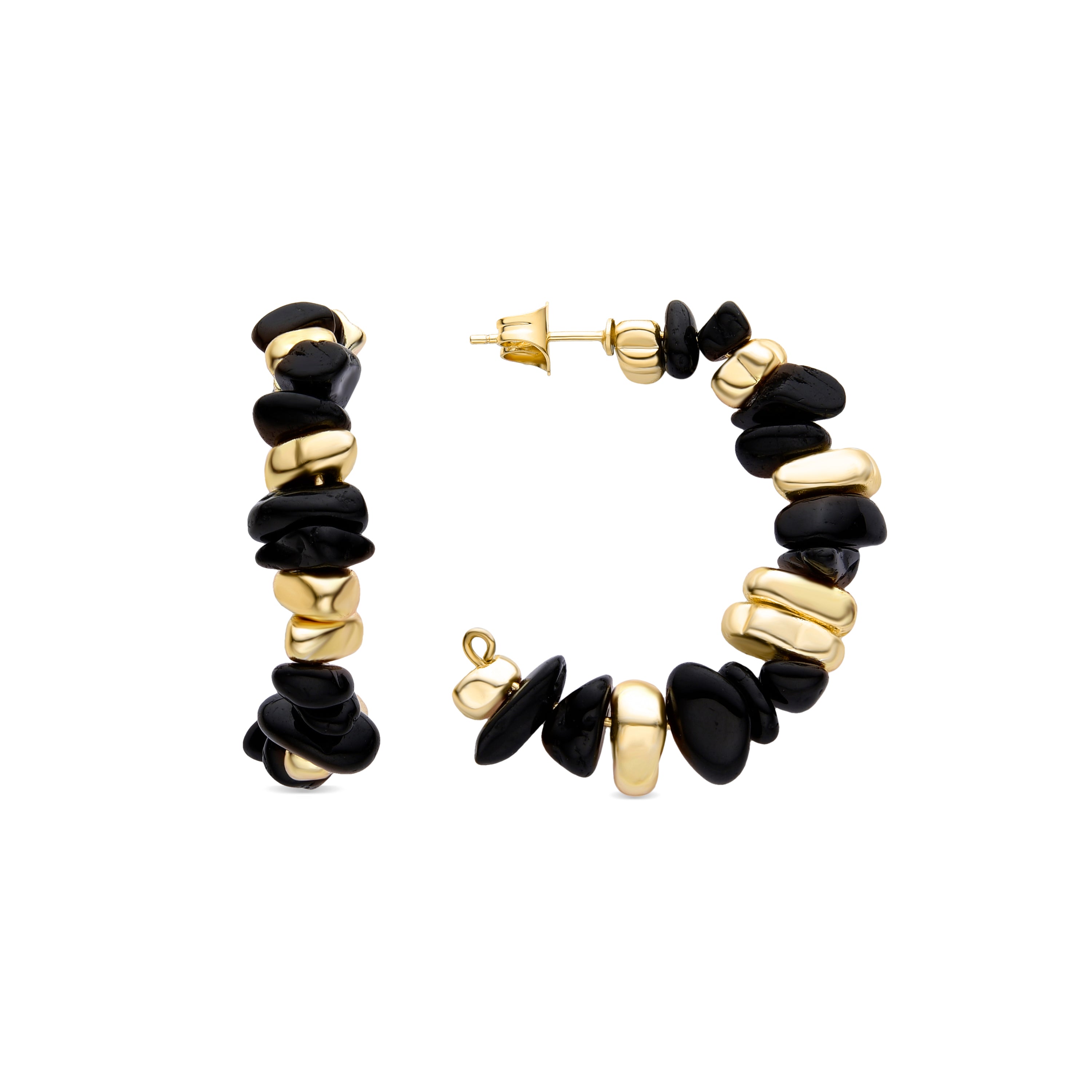 Pendientes Delay de Agata Negra acabado oro 18k. África Moda te sumerge en un mundo de colores vibrantes, texturas exquisitas y diseños artesanales que reflejarán la esencia de tu espirítu.