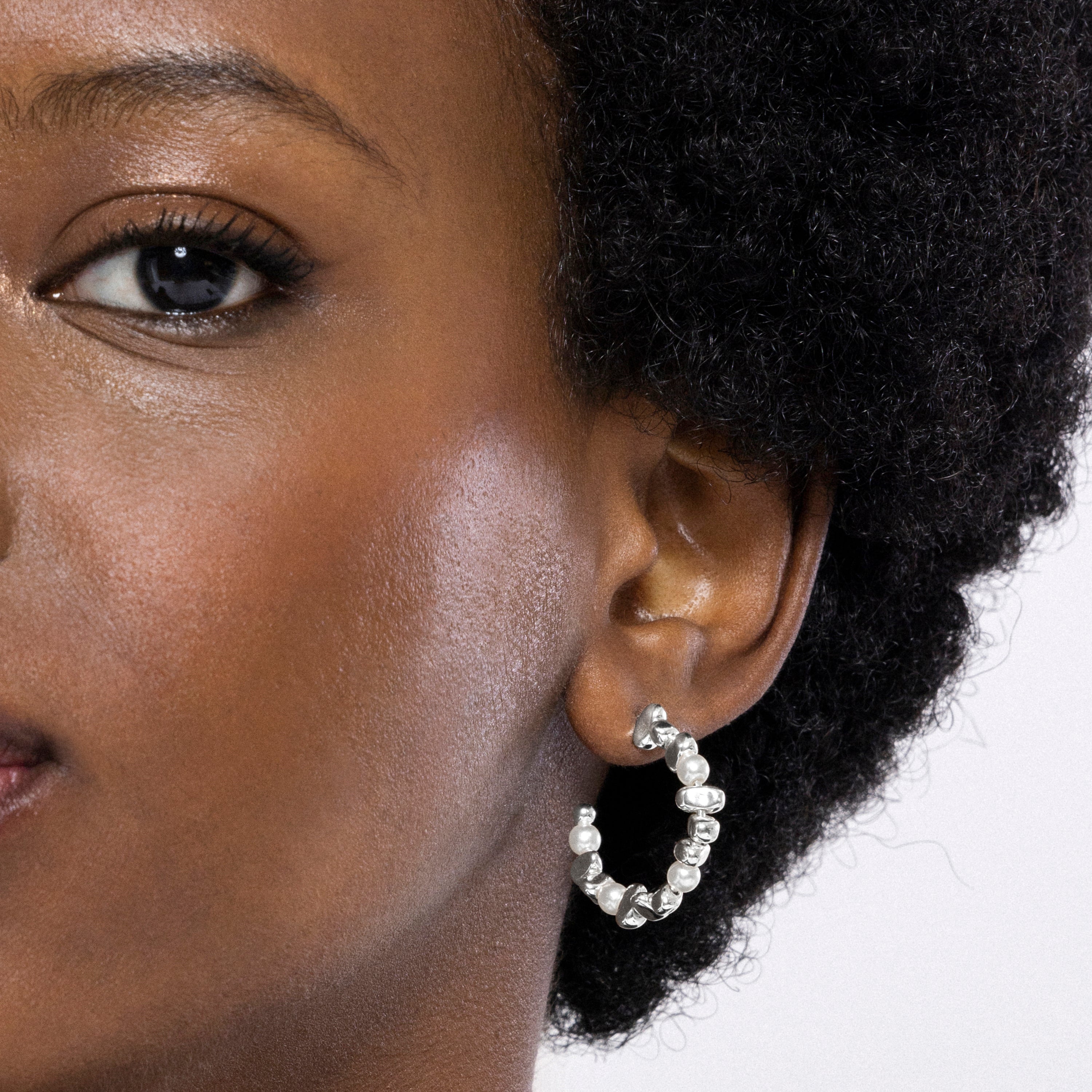 Pendientes Dimo con Perla Blanca acabados en rodio. África Basic encarna la sencillez refinada, piezas atemporales con líneas suaves y el brillo adicional de las circonitas. Joyas básicas sin pretensiones que son perfectas para el uso diario, pero también pueden funcionar en ocasiones especiales.
