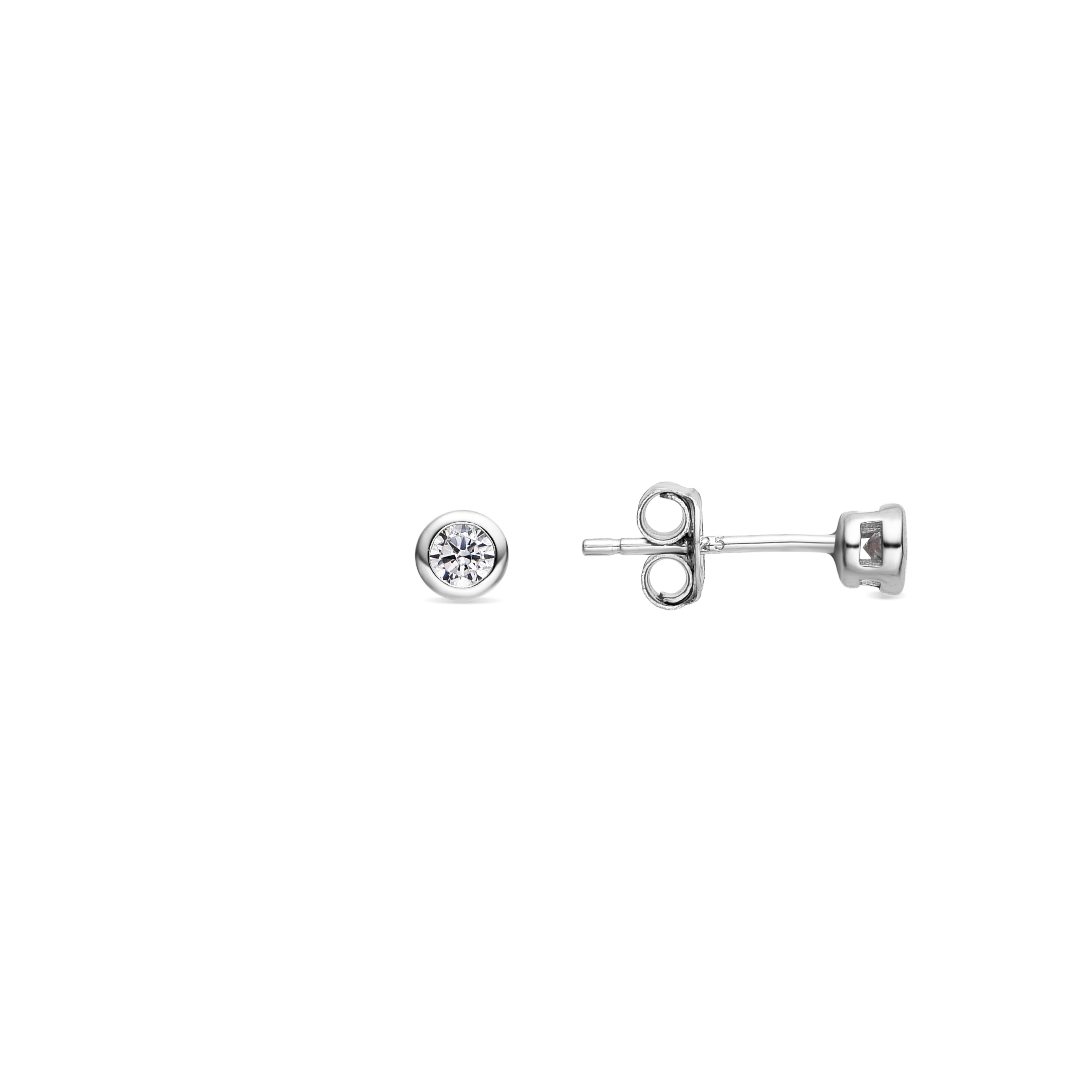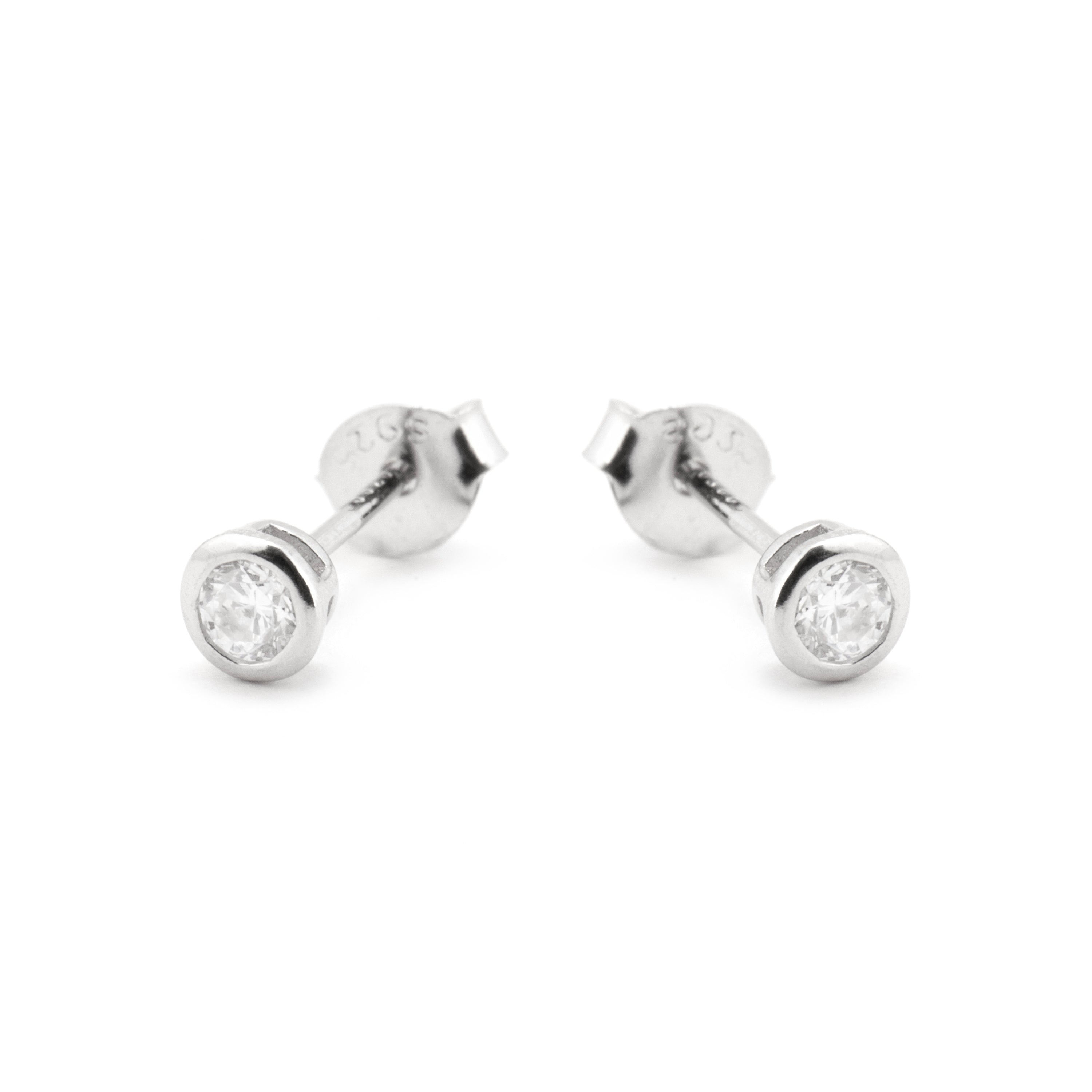 Pendientes Basili de Plata de Ley 925 y Circonita Brillante acabado en rodio. Essential encarna la sencillez refinada, piezas atemporales con líneas suaves y el brillo adicional de las circonitas. Joyas básicas sin pretensiones que son perfectas para el uso diario, pero también pueden funcionar en ocasiones especiales.