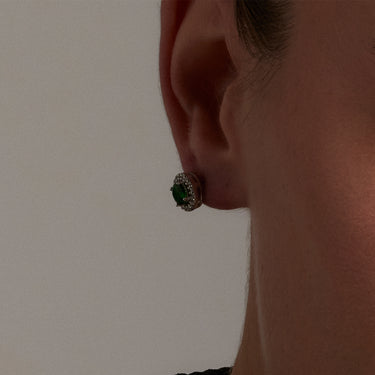 Pendientes Gema De Leyenda De Esmeralda Cristal De Roca acabados en rodio. El nombre de la línea lo avala: ATELIER Color. Joyas que se rinden a un diseño atípico que han colocado estos diseños sensuales en una posición privilegiada: formando parte del fondo de armario de la mujer actual. Diseños constituidos por circonitas de colores cuidadosamente terminados a mano. Una redefinición de diseños de joyería que se materializa en diseños puros y simples. Creaciones que expresan la singularidad femenina: ready- to-wear.