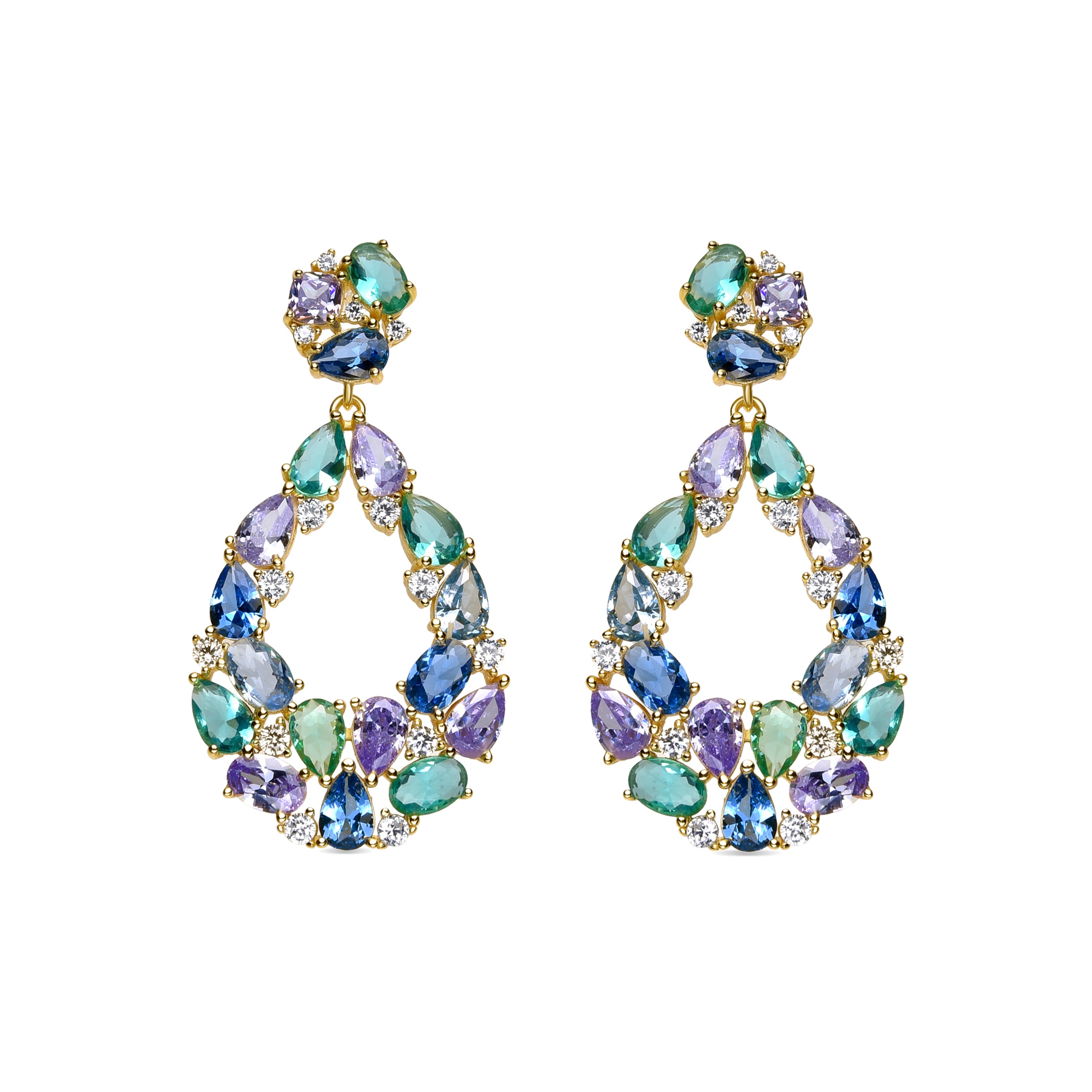 Pendientes de Plata de Ley 925 y Circonita Multicolor acabado oro 18k - Hereli