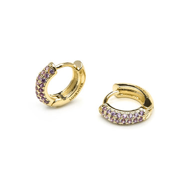Pendientes de 9mm de diámetro acabado Oro Amarillo de 18k con circonita Amatista - Krax