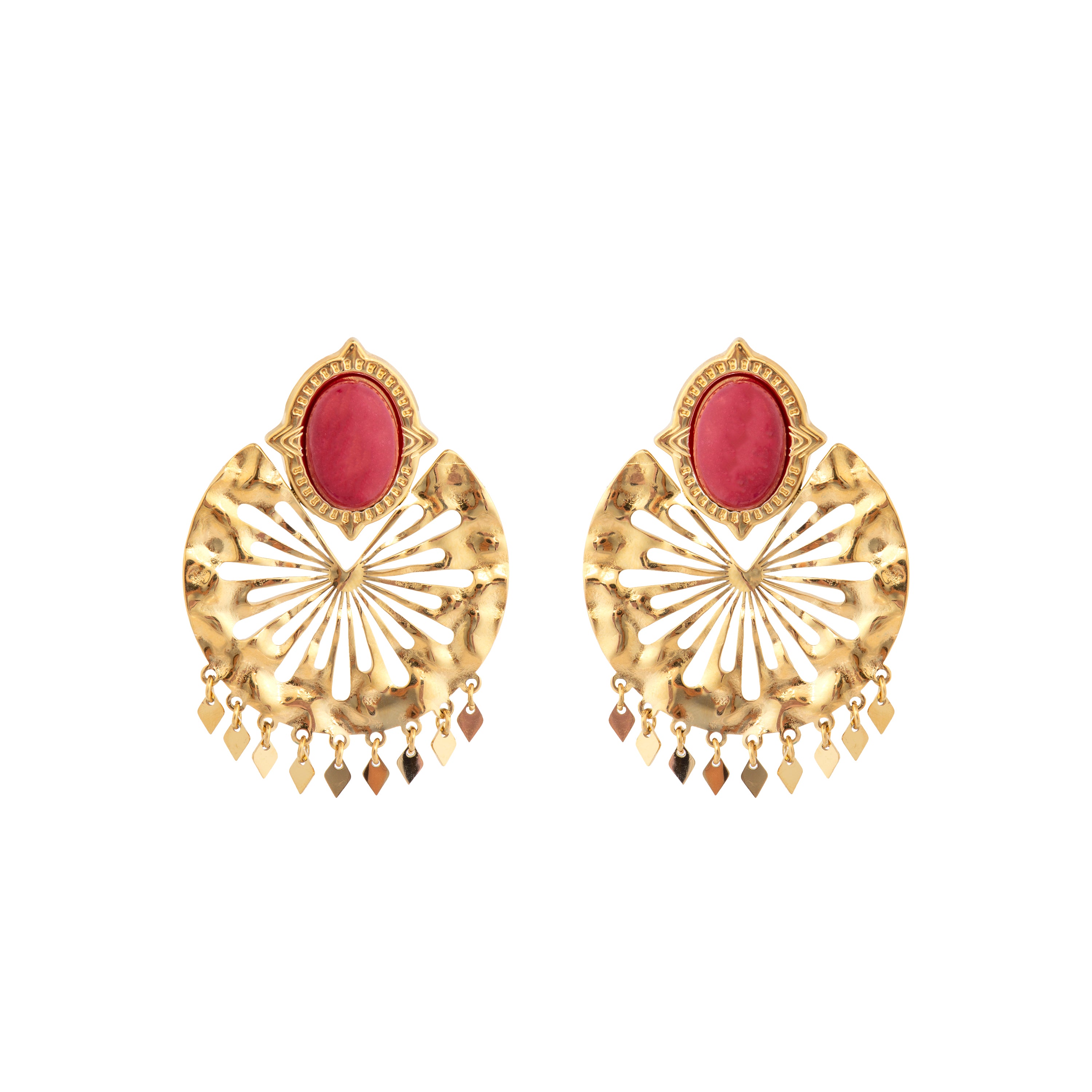Pendientes acabado oro amarillo de 18k y Coral - Kumora