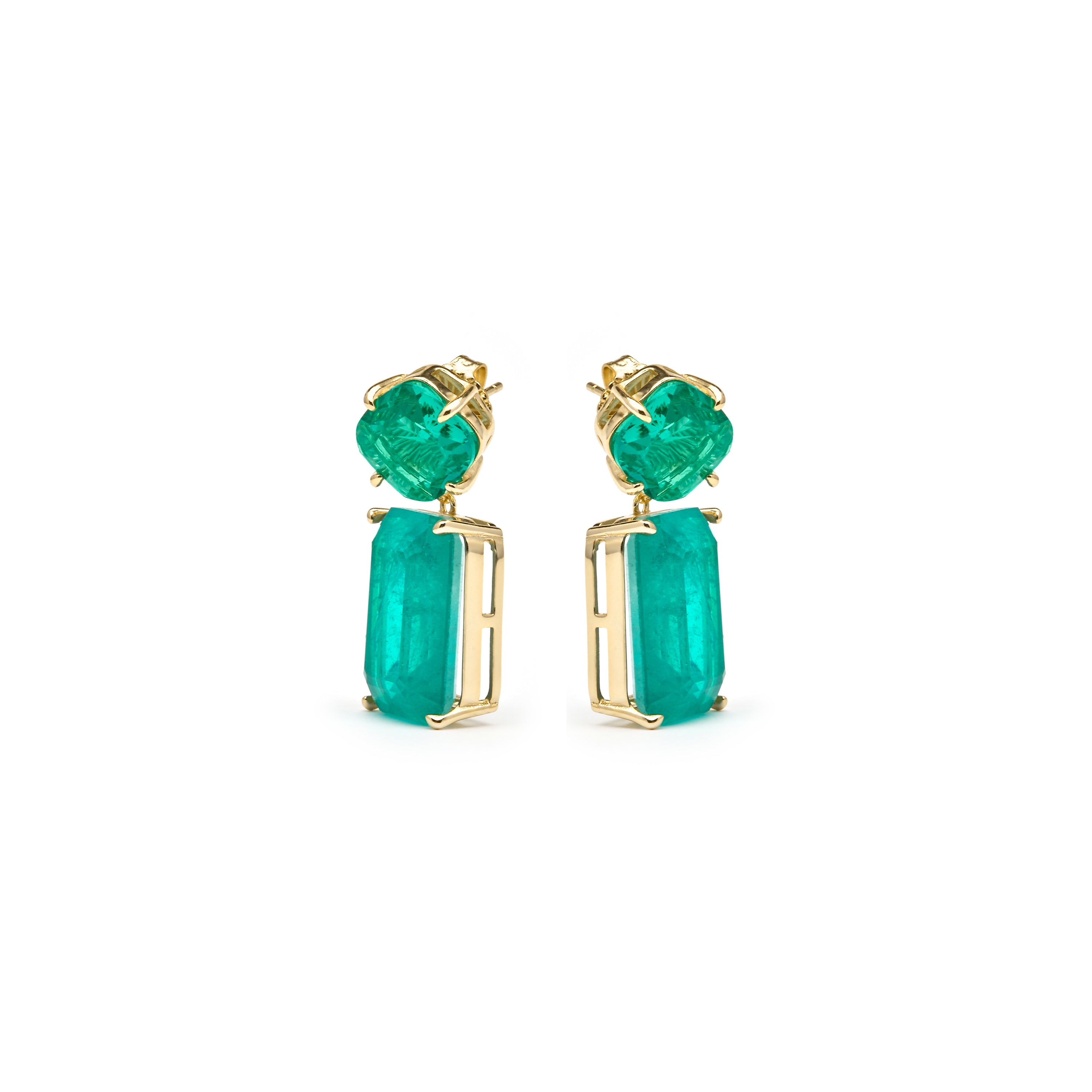 Pendientes Lindrak De Cuarzo Hidrotermal Verde Claro acabados en oro amarillo de 18 quilates. El nombre de la línea lo avala: ATELIER Color. Joyas que se rinden a un diseño atípico que han colocado estos diseños sensuales en una posición privilegiada: formando parte del fondo de armario de la mujer actual. Diseños constituidos por circonitas de colores cuidadosamente terminados a mano. Una redefinición de diseños de joyería que se materializa en diseños puros y simples. Creaciones que expresan la singularidad femenina: ready- to-wear.