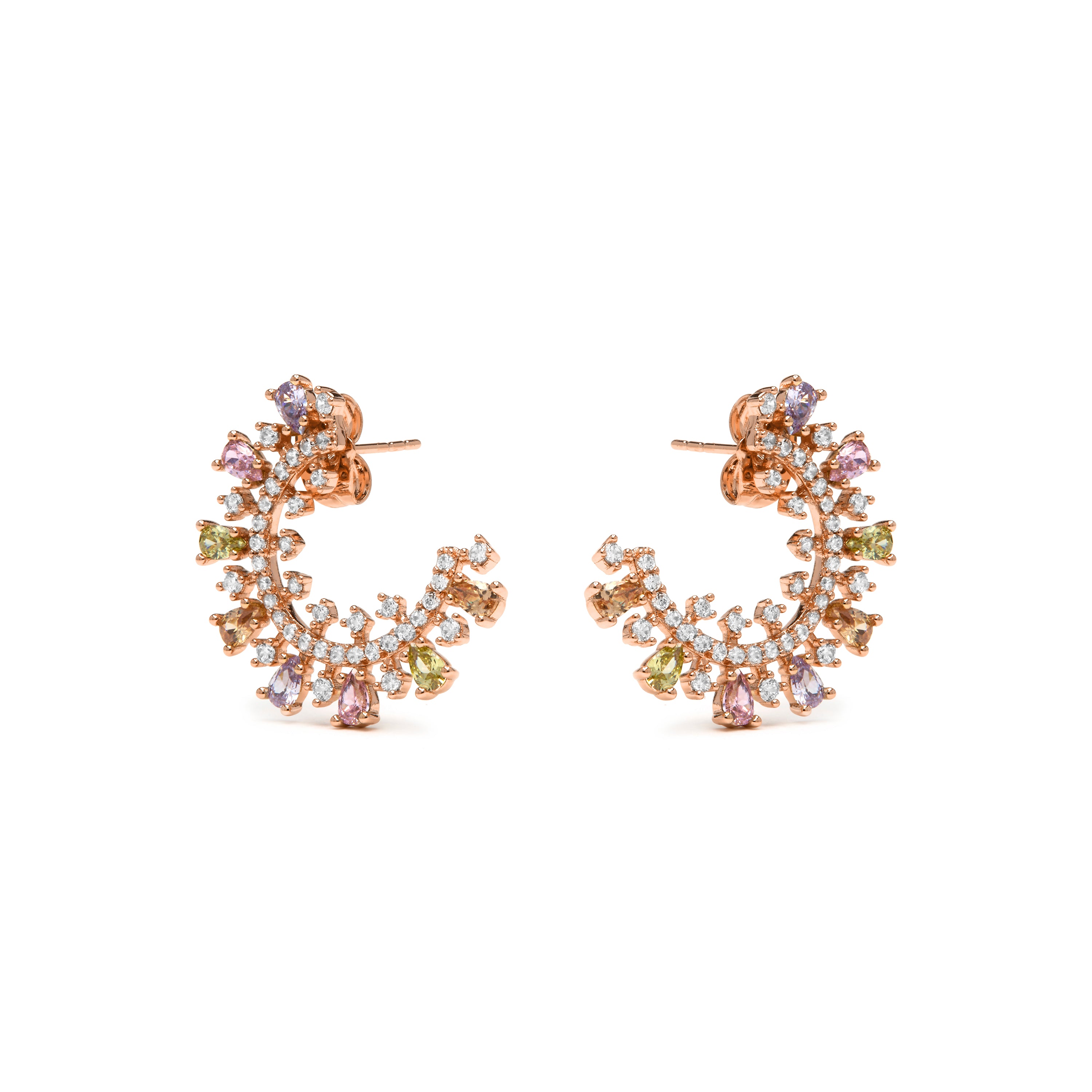 Pendientes acabado oro amarillo de 18k y Circonita Multicolor - Mamoe