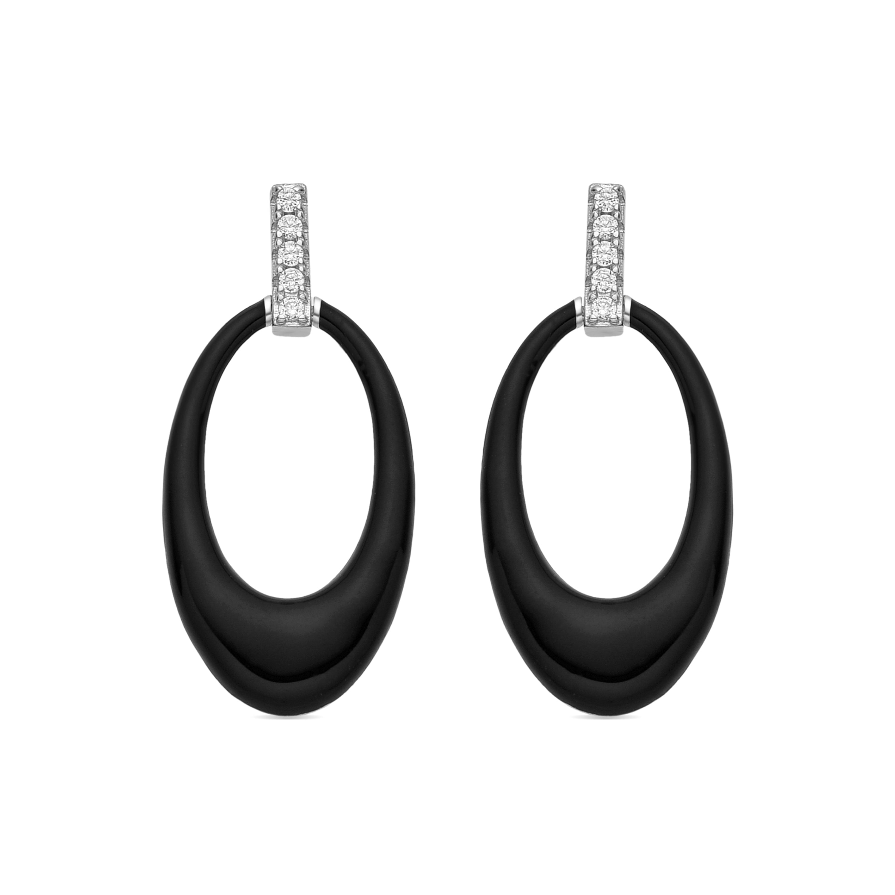 Pendientes Onves de Plata de Ley 925 y Lacado Negro acabado en rodio. Momentos para brillar combina a la perfección diseños que se resisten al paso del tiempo con joyas más innovadoras.Joyas elegantes y sofisticadas para brillar en ocasiones especiales.