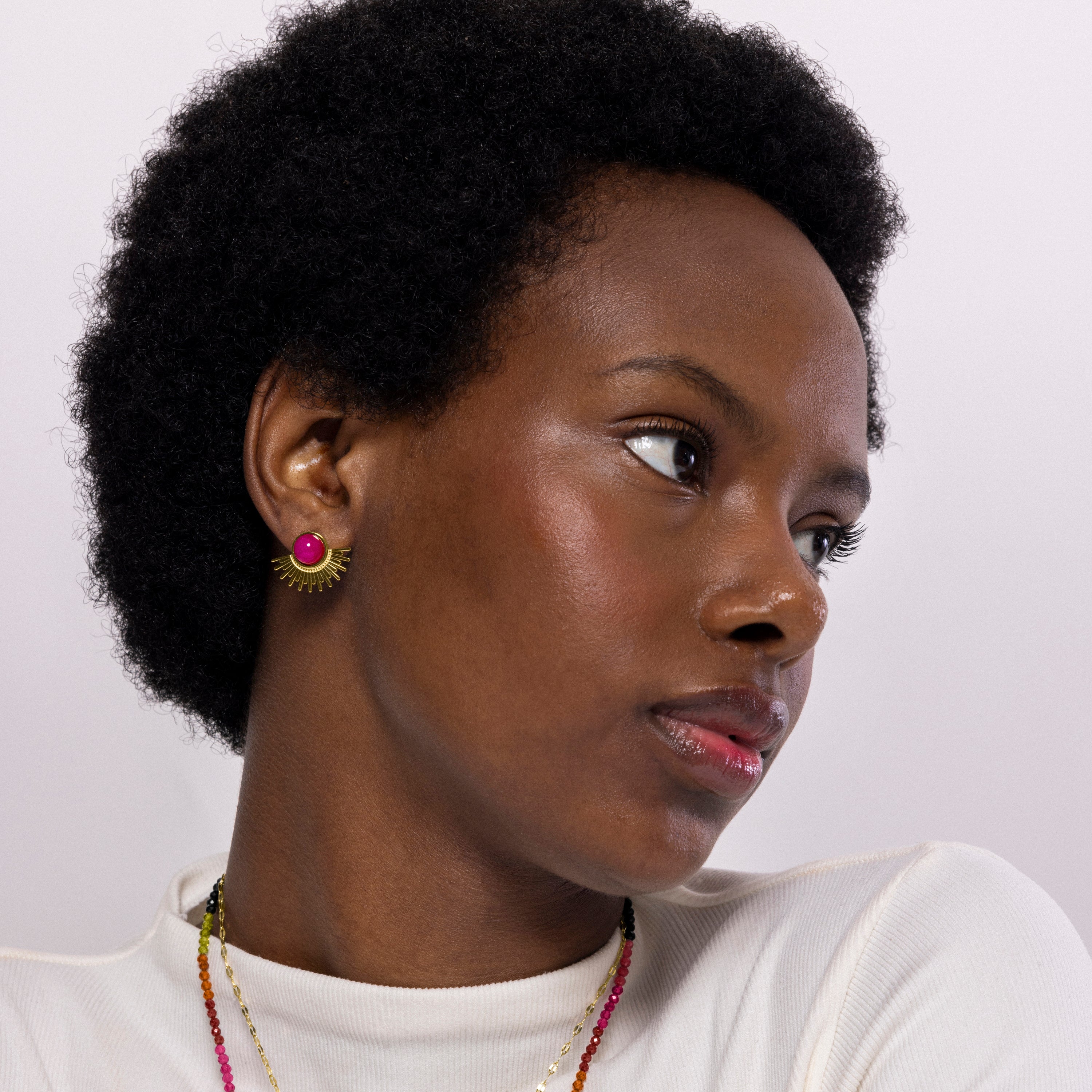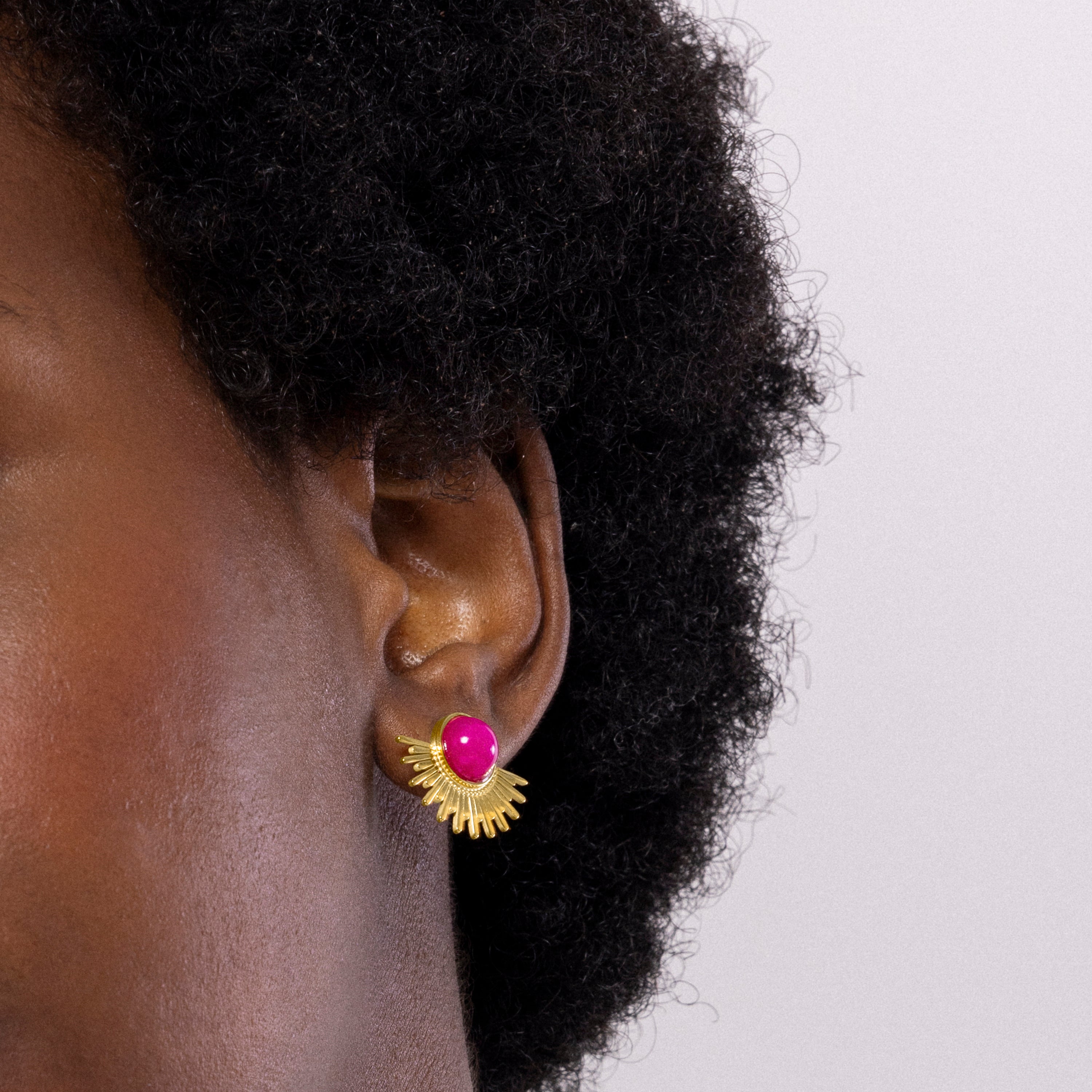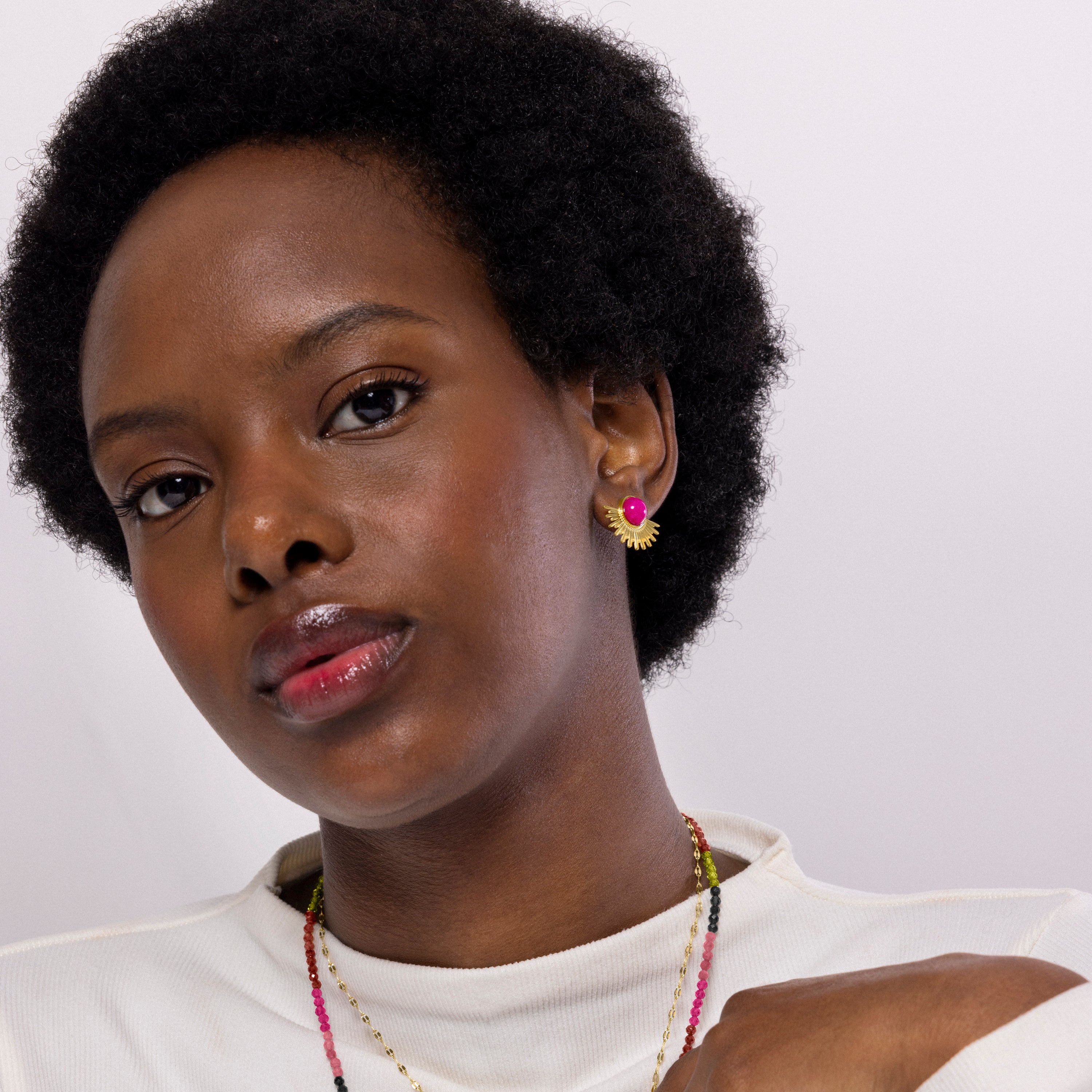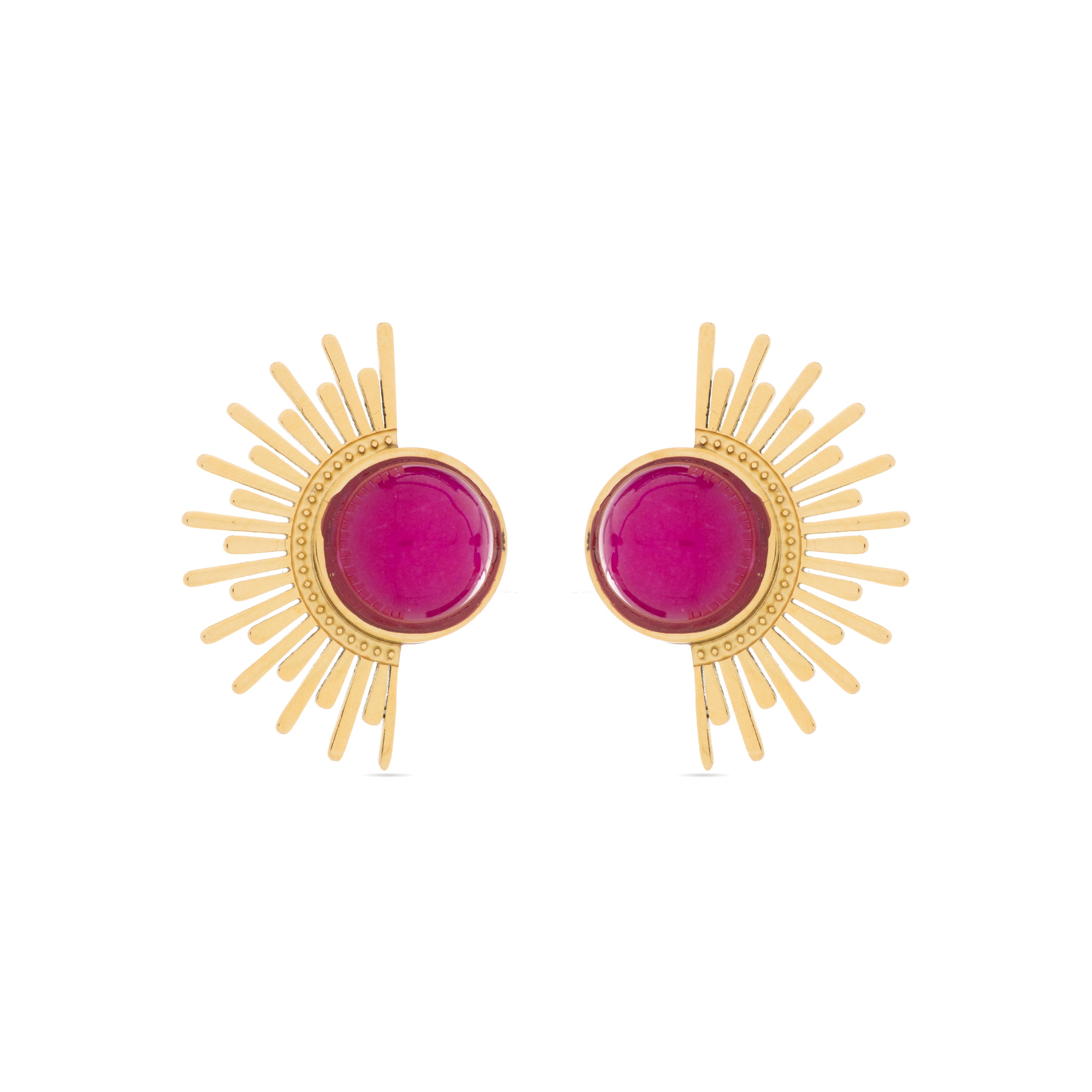 Pendientes de acero Rok de Cristal Rojo acabados en oro amarillo de 18k. El estilo Boho es una estética de espíritu libre que mezcla diferentes culturas y expresiones artísticas en un estilo ecléctico con énfasis en los elementos orgánicos y la naturaleza.