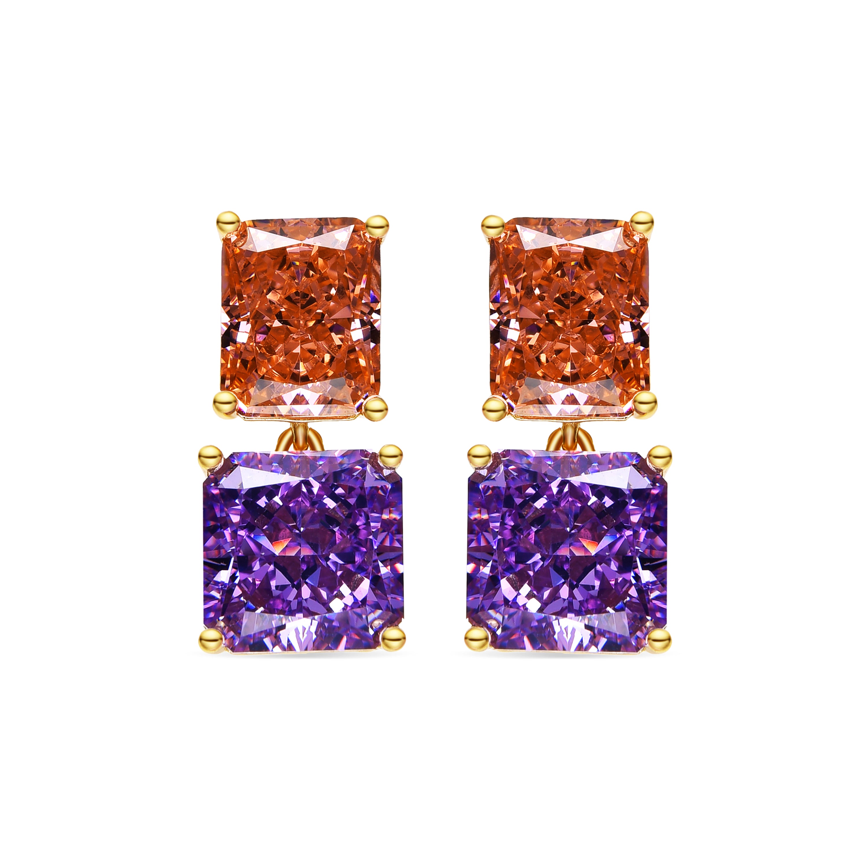 Pendientes de Plata de Ley 925 y Circonita Amatista acabado oro 18k - Rokhay