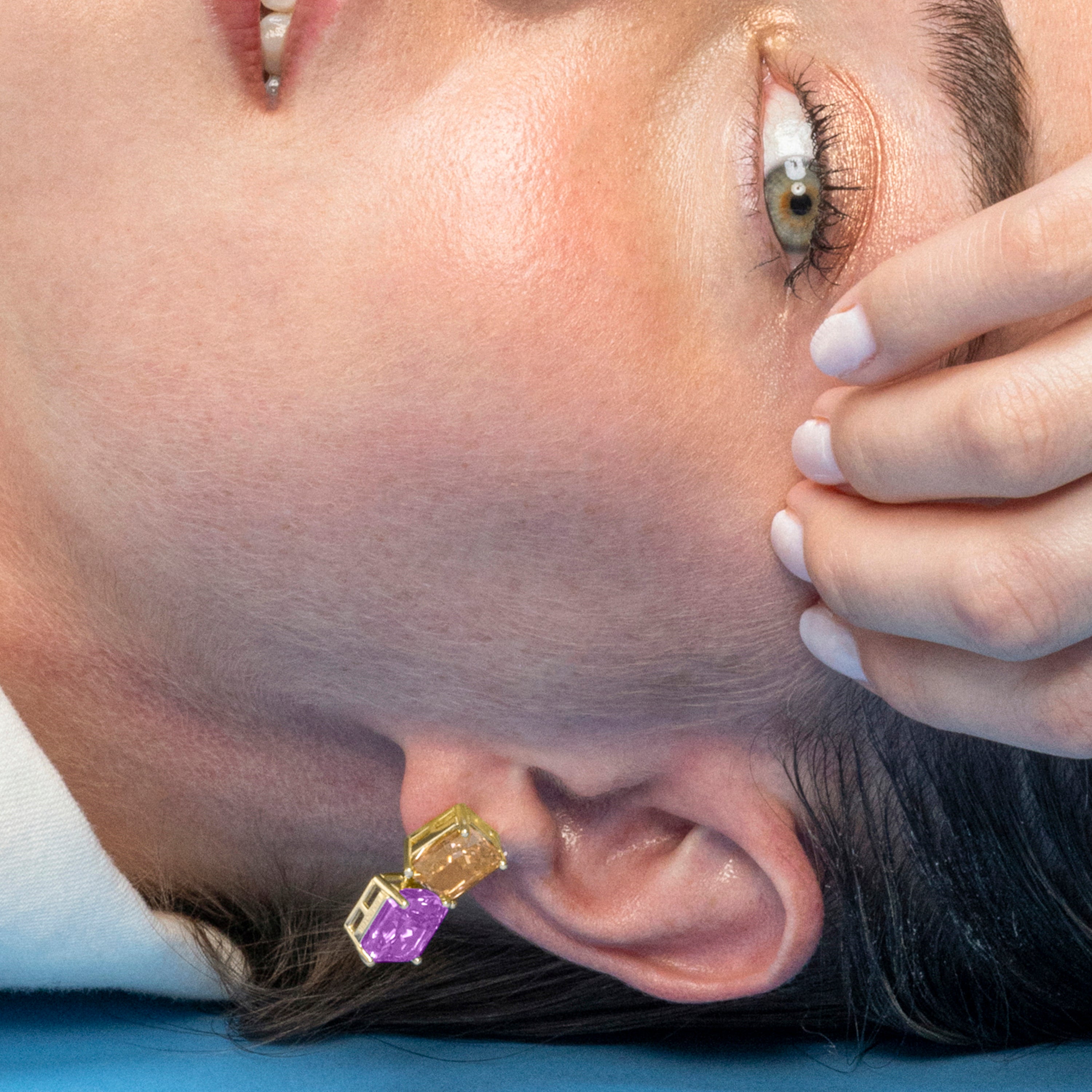 Pendientes Rokhay de Plata de Ley 925 y Circonita Amatista acabado en oro amarillo de 18k. Atelier transmite tendencia en cada joya, con diseños que se han ido adaptando a la evolución de la moda y de la mujer. Es la línea perfecta para mujeres únicas que quieren aportar un toque de color a su día a día.
