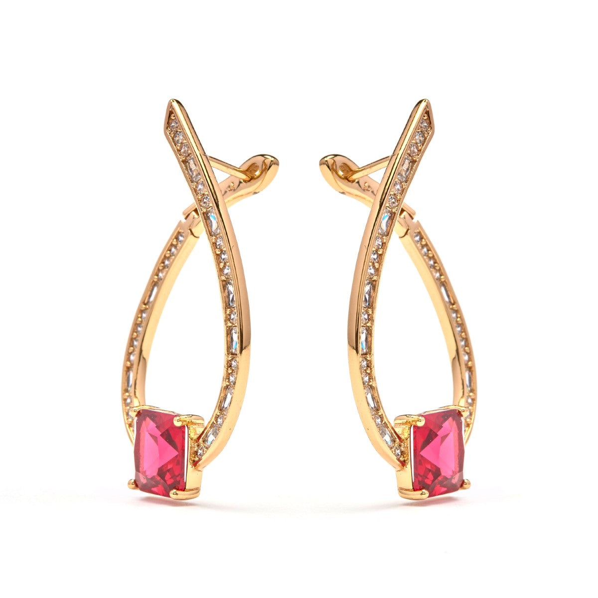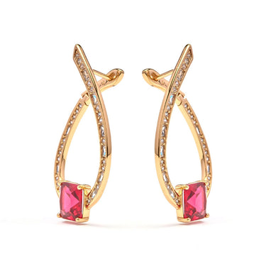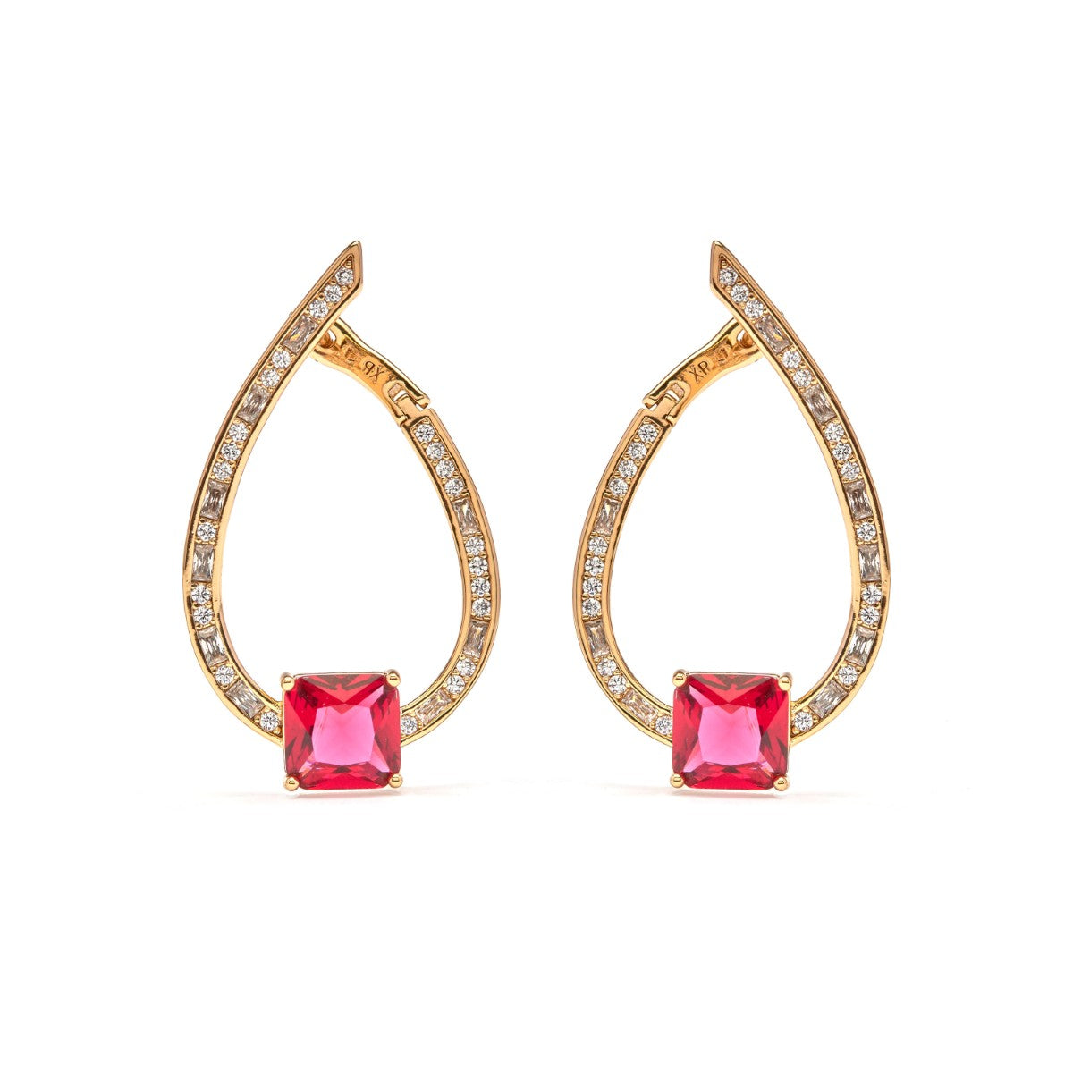 Pendientes Riyu de Circonita Rubí acabado en oro amarillo de 18k
