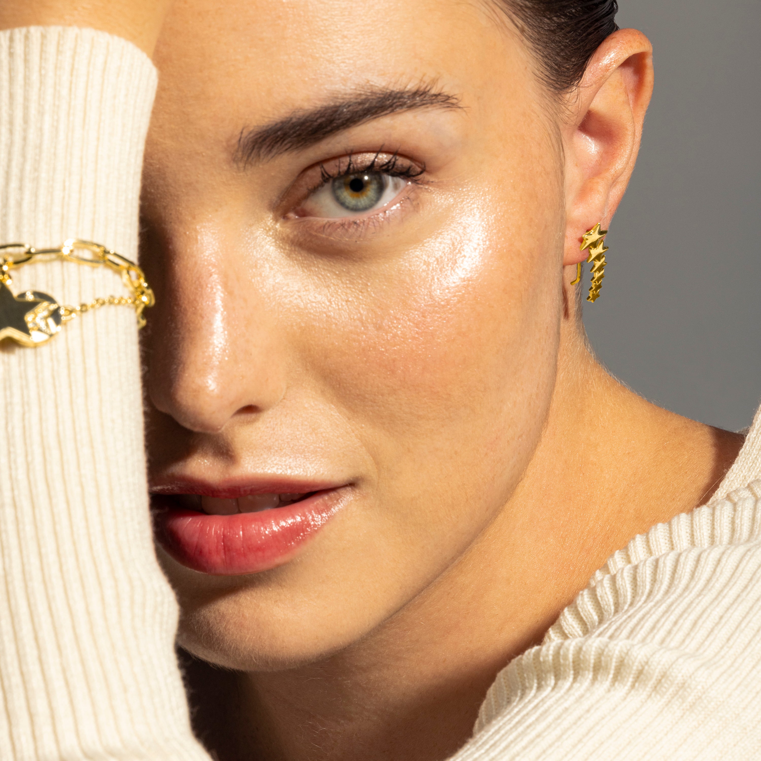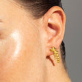 Pendientes Gatra acabados en baño de oro amarillo de 18 quilates. África Basic encarna la sencillez refinada, piezas atemporales con líneas suaves y el brillo adicional de las circonitas. Joyas básicas sin pretensiones que son perfectas para el uso diario, pero también pueden funcionar en ocasiones especiales.