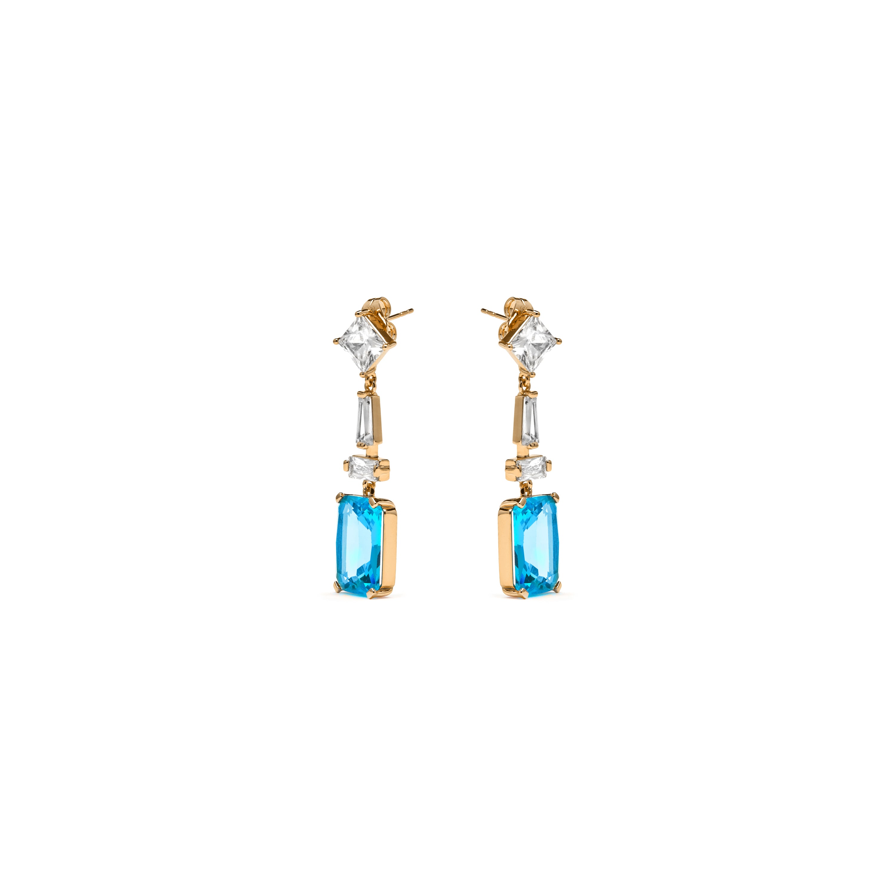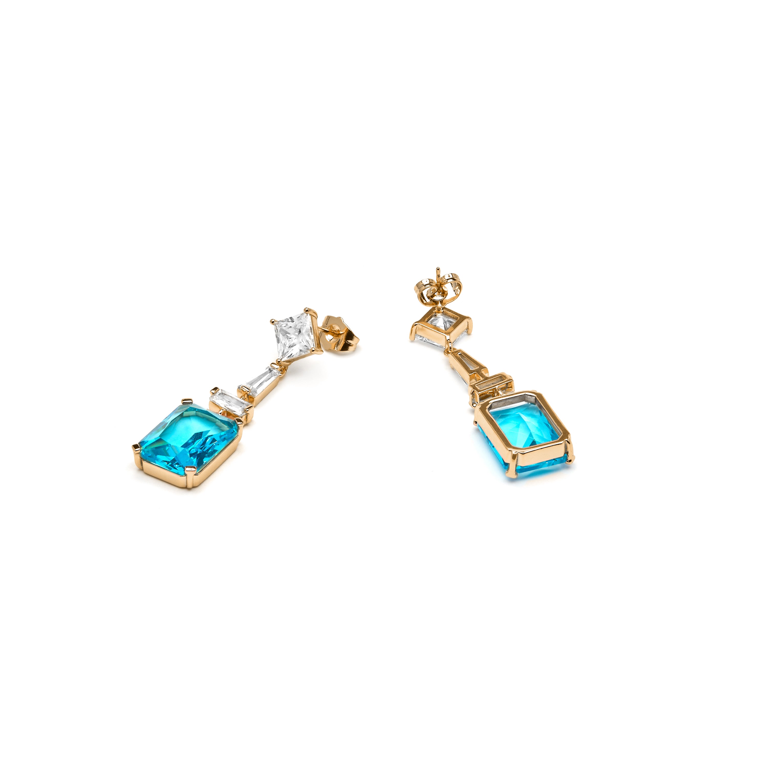 Pendientes acabado oro amarillo de 18k y Circonita Aguamarina - Shafaw