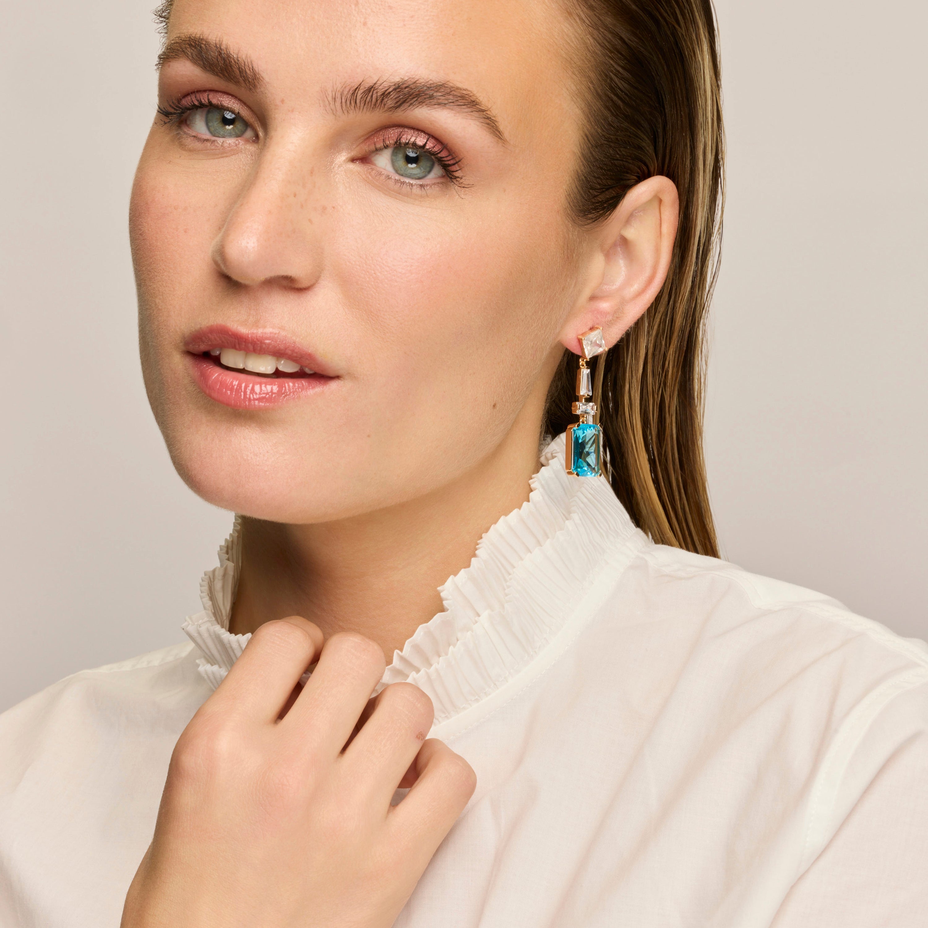 Pendientes Shafaw de Circonita Aguamarina acabado oro amarillo de 18k