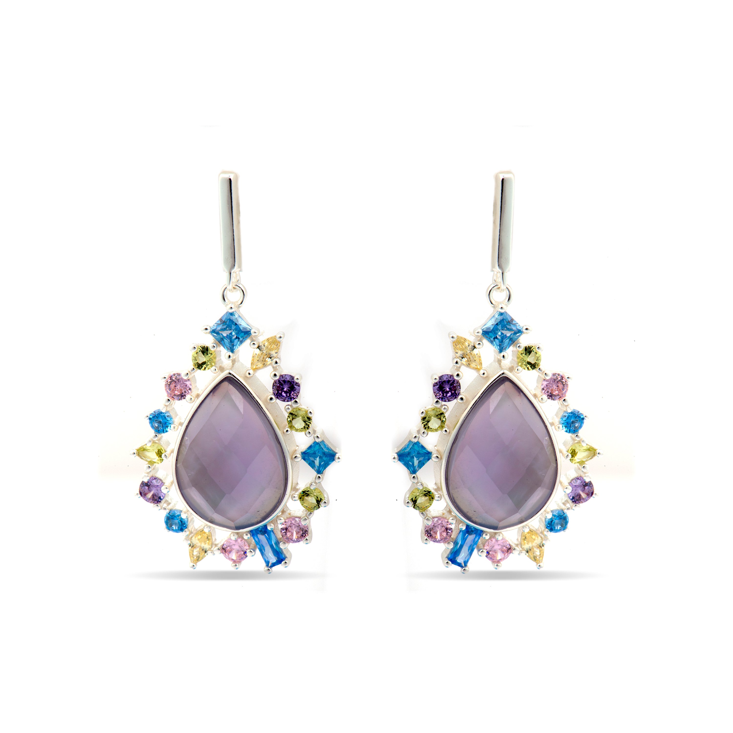 Pendientes Shigua de Plata de Ley 925 y Circonita Multicolor acabado rodio