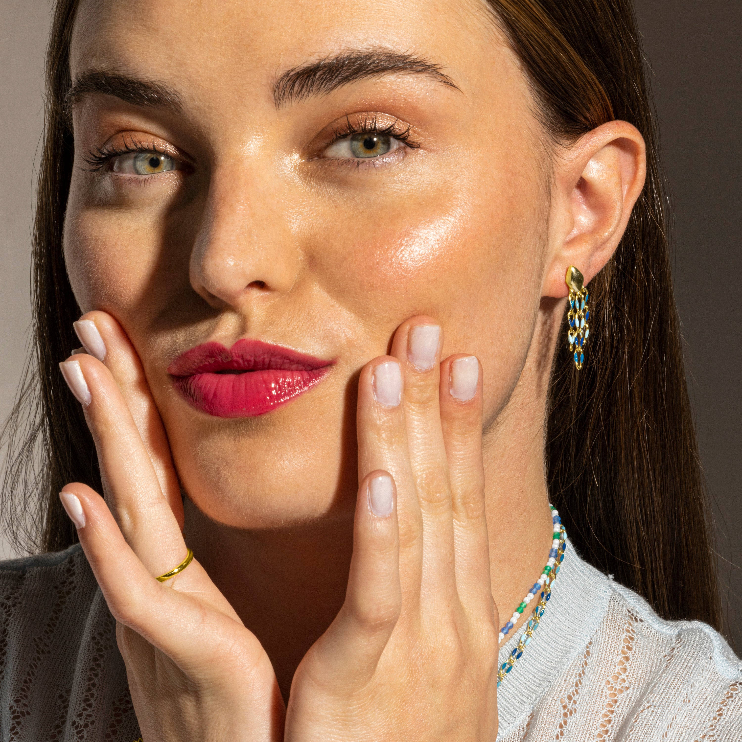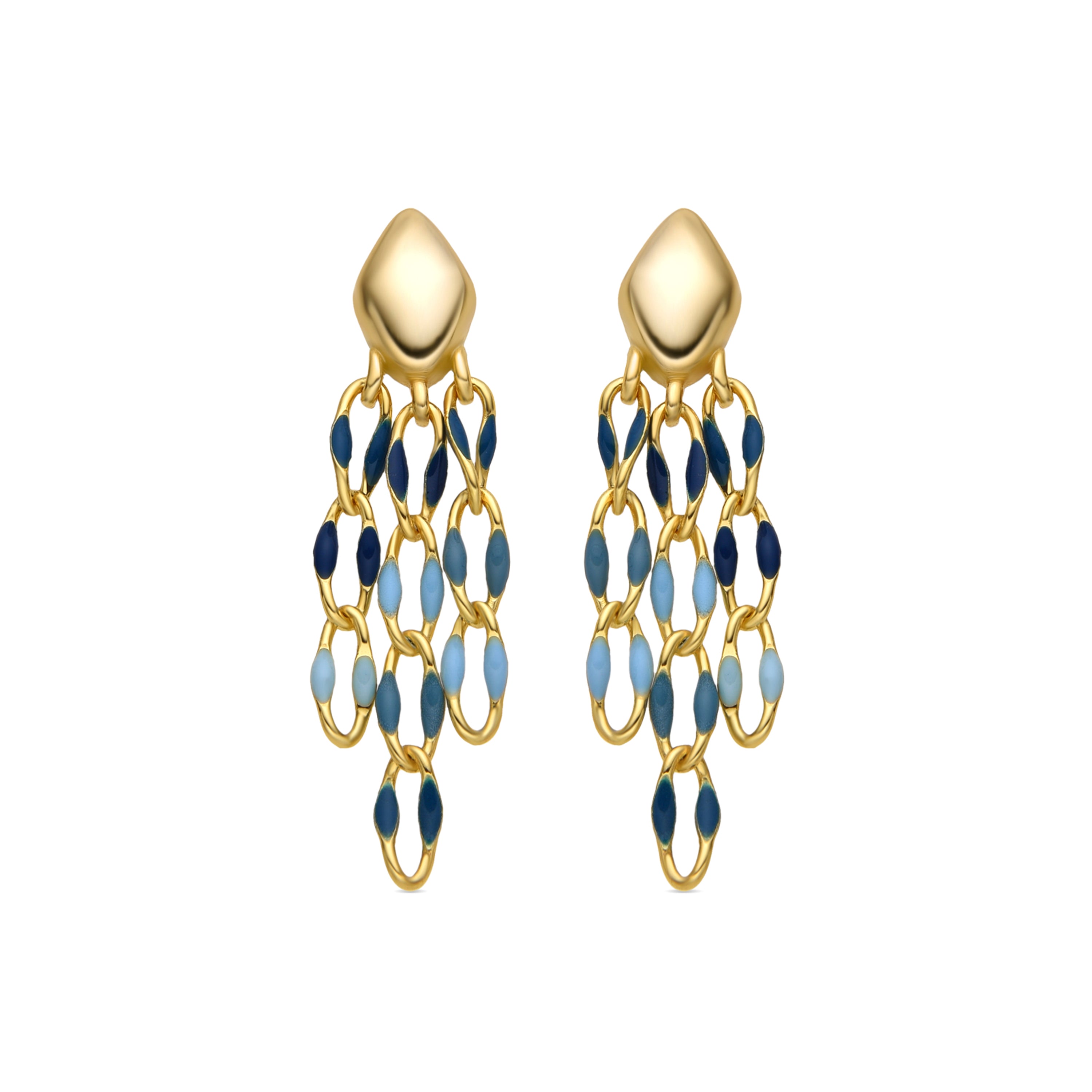 Pendientes Shione cierre de Plata de Ley 925, cadena de metal y Lacado Azul acabado oro 18k. Pide un deseo se caracteriza por diseños de carácter joven, repletos de significado y color, originales a la vez que discretos, que pretenden convertirse en pequeños amuletos.