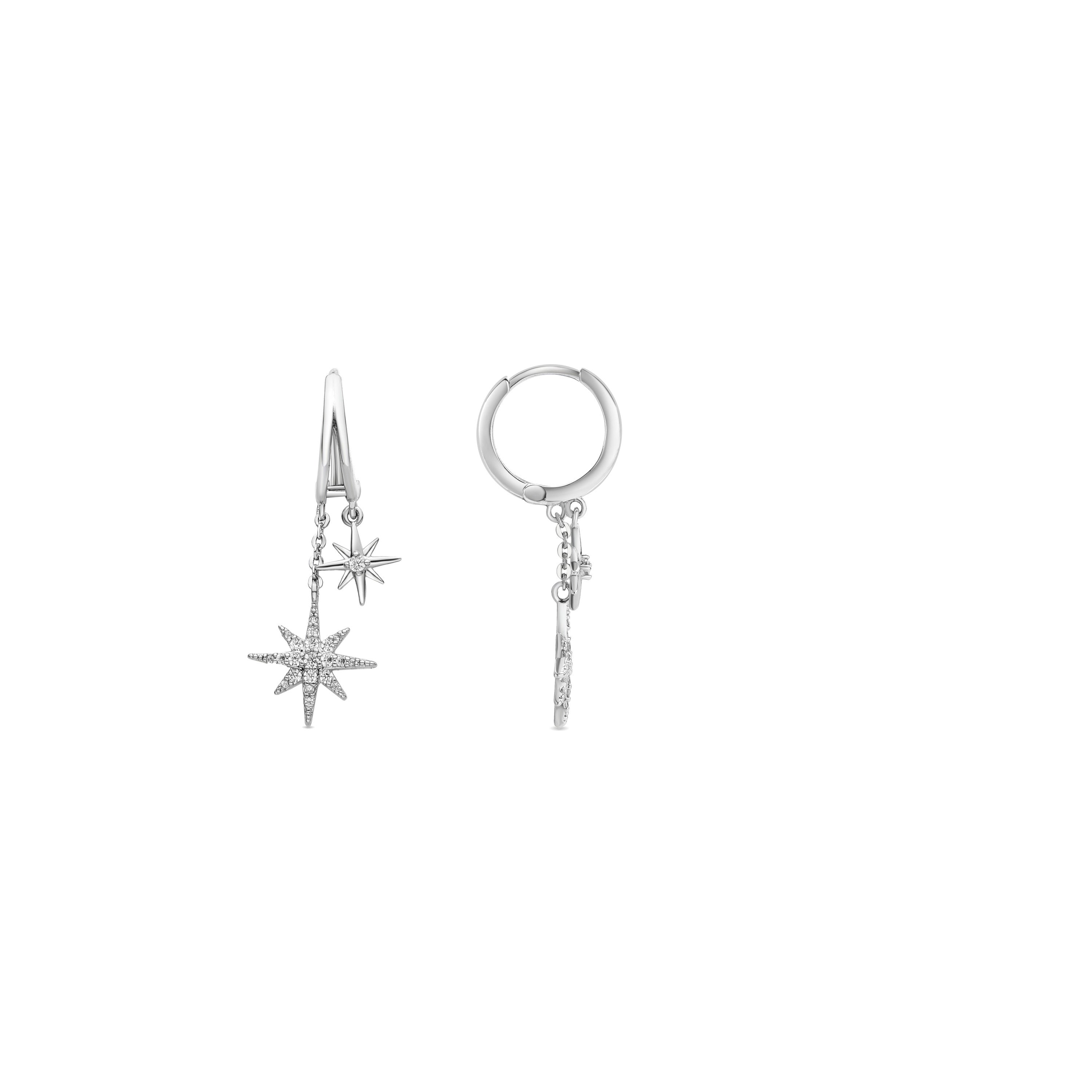 Pendientes Estrella acabados en baño de rodio. África Basic encarna la sencillez refinada, piezas atemporales con líneas suaves y el brillo adicional de las circonitas. Joyas básicas sin pretensiones que son perfectas para el uso diario, pero también pueden funcionar en ocasiones especiales.