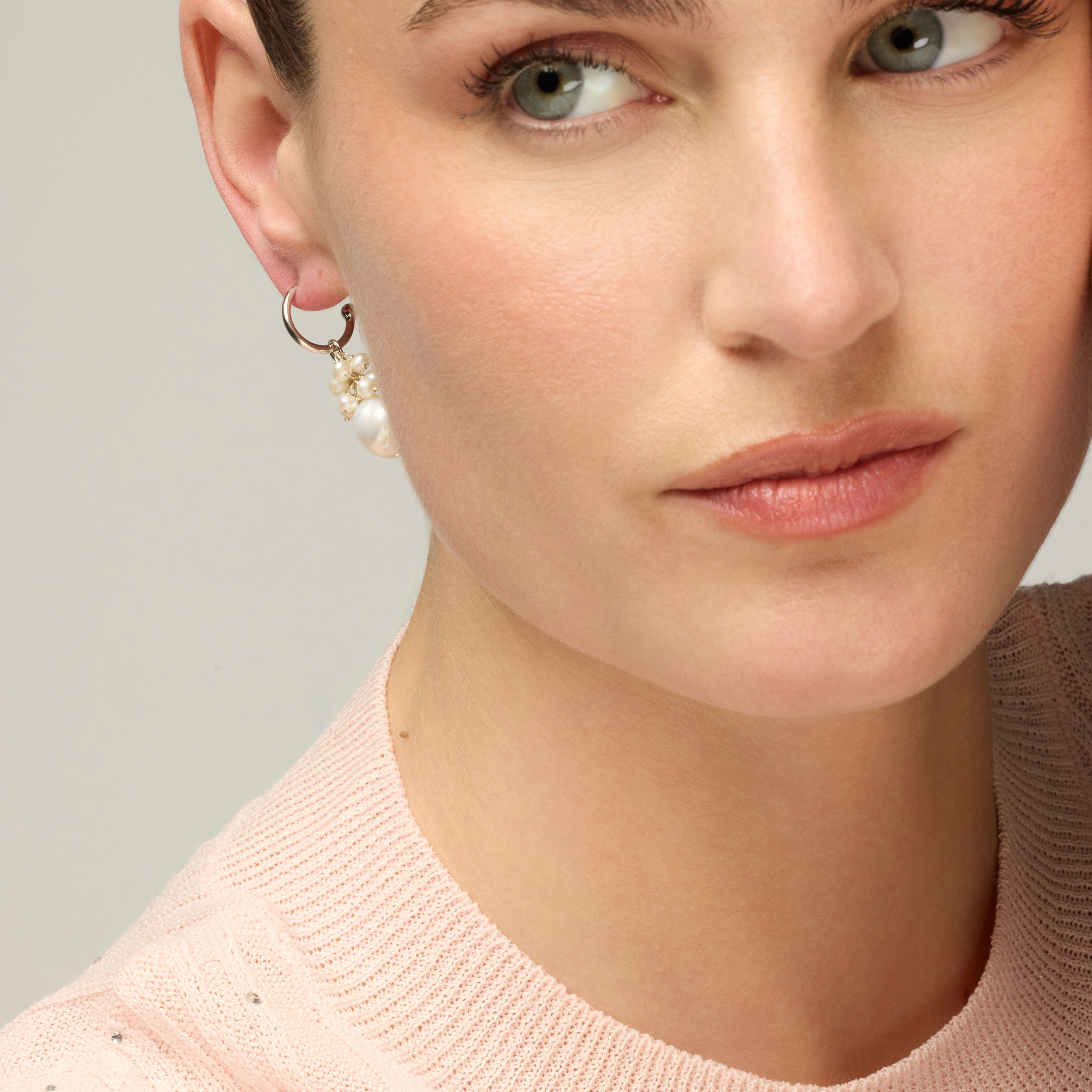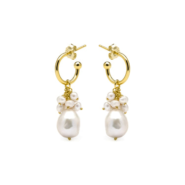 Pendientes Zoqoyi de Plata de Ley 925 y Perla Blanca acabado oro amarillo de 18k