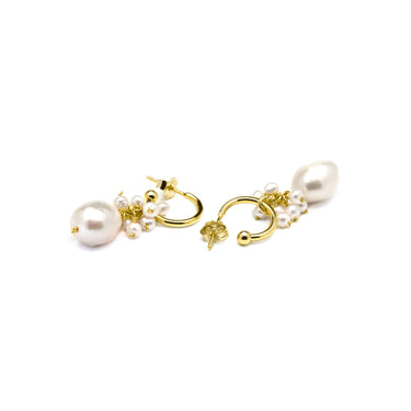 Pendientes de Plata de Ley 925 y Perla Blanca acabado oro amarillo de 18k - Zoqoyi