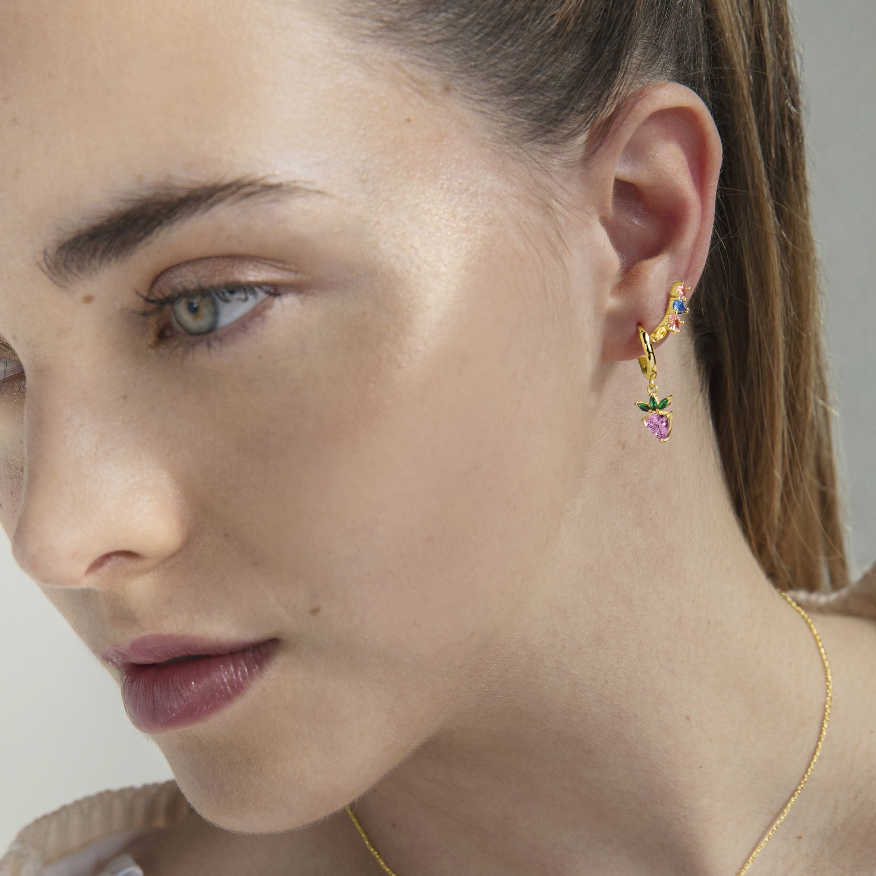 Piercing Asre Plata de Ley 925 y Circonita Multicolor acabado en oro amarillo de 18 Quilates. Joyas con diseños excesivos en los que el grabado. Cadenas, colgantes y pulseras son los protagonistas. Delicados diseños dan nombre a nuestra línea GRABADO. Joyas cuidadosamente terminadas y pulidas a mano creando formas perfectas bañados en rodio, oro amarillo y oro rosa de 18 quilates sobra plata de Ley 925. Como en los años 60 todo se vuelve a mezclar para un nuevo golpe de efecto para la generación beat, siendo el mejor mix de sobriedad newyorker y sensualidad femenina. Los diseños con personalidad dictan el color y la madre naturaleza: la unión de diferentes materiales y una exquisita disposición de las piezas hacen de esta línea la joya única, definiendo el lado más british de la it girl: La relatividad es (IN) herente al color.