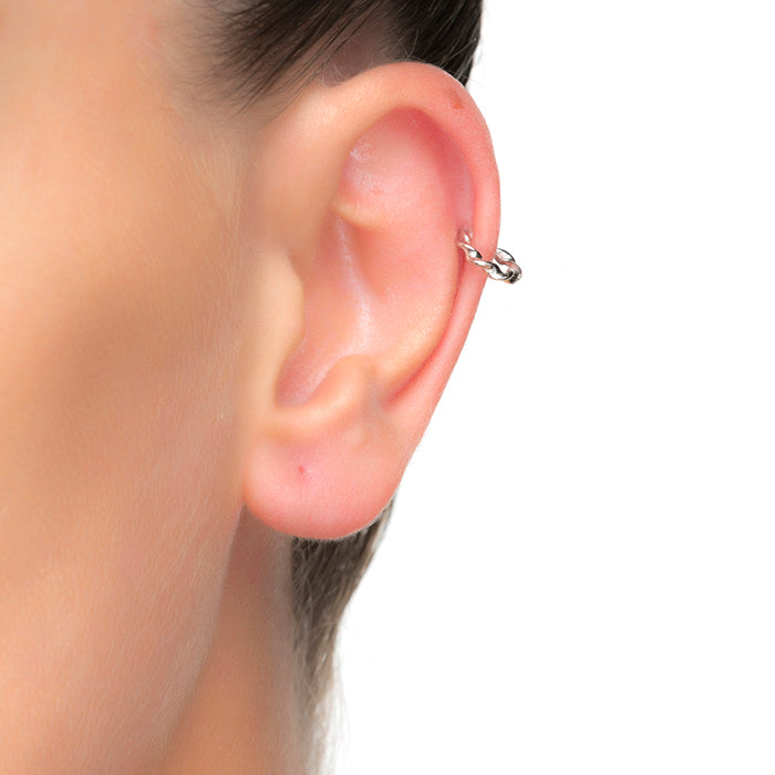 Pendiente único. Earcuff canchet de plata de ley 925 con acabado en baño de rodio. Joyas con diseños excesivos en los que “el “piercing, trepadores, earcuff y earjacket son los protagonistas. Delicados diseños dan nombre a EARRINGS. Earrings cuidadosamente terminados y pulidos a mano creando formas perfectas con infinitas combinaciones de circonitas de colores bañados en rodio, oro amarillo y oro rosa de 18 quilates sobre plata de Ley 925.