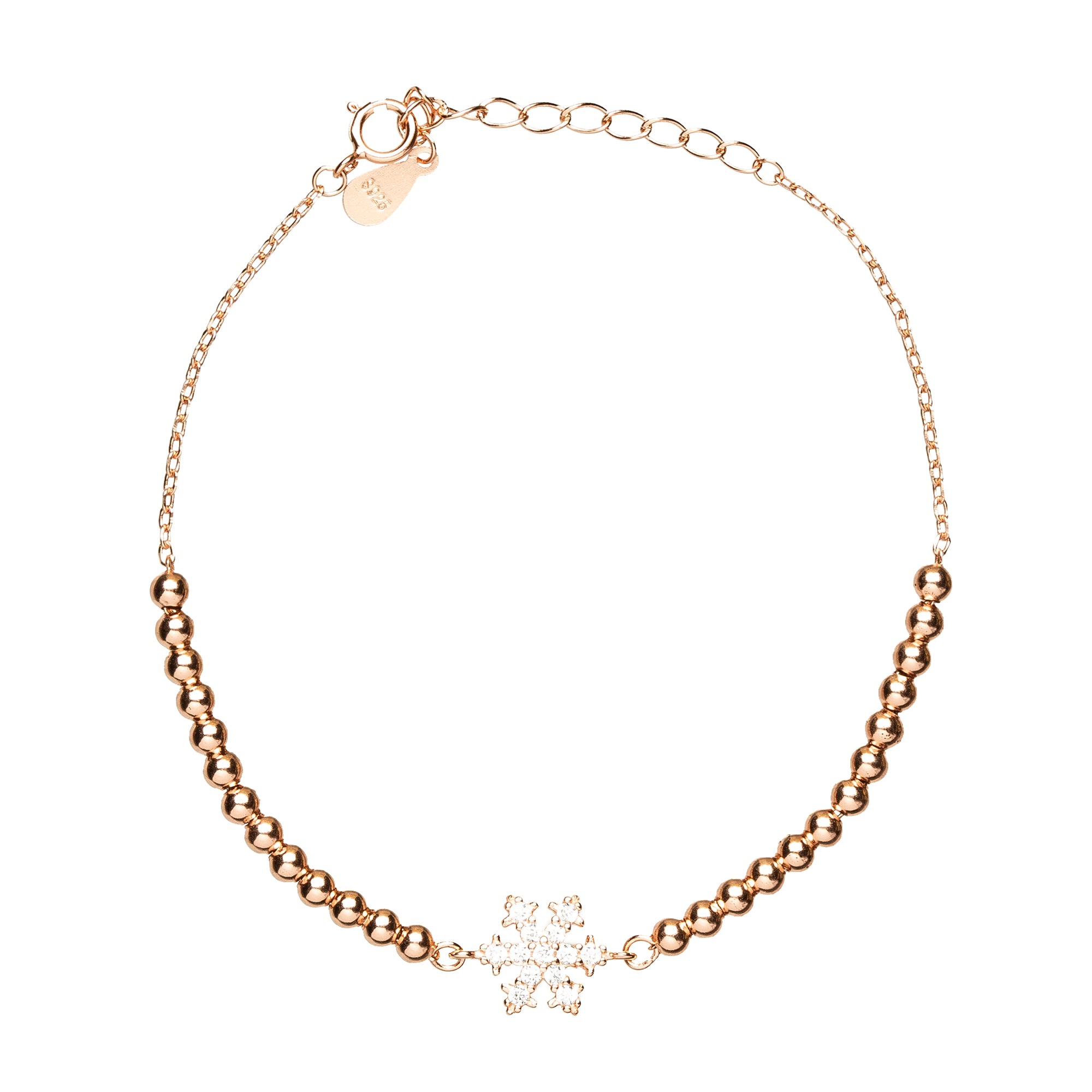 Pulsera de Plata de Ley 925 con Circonita Brillante acabada en oro rosa 18K - Copo De Nieve