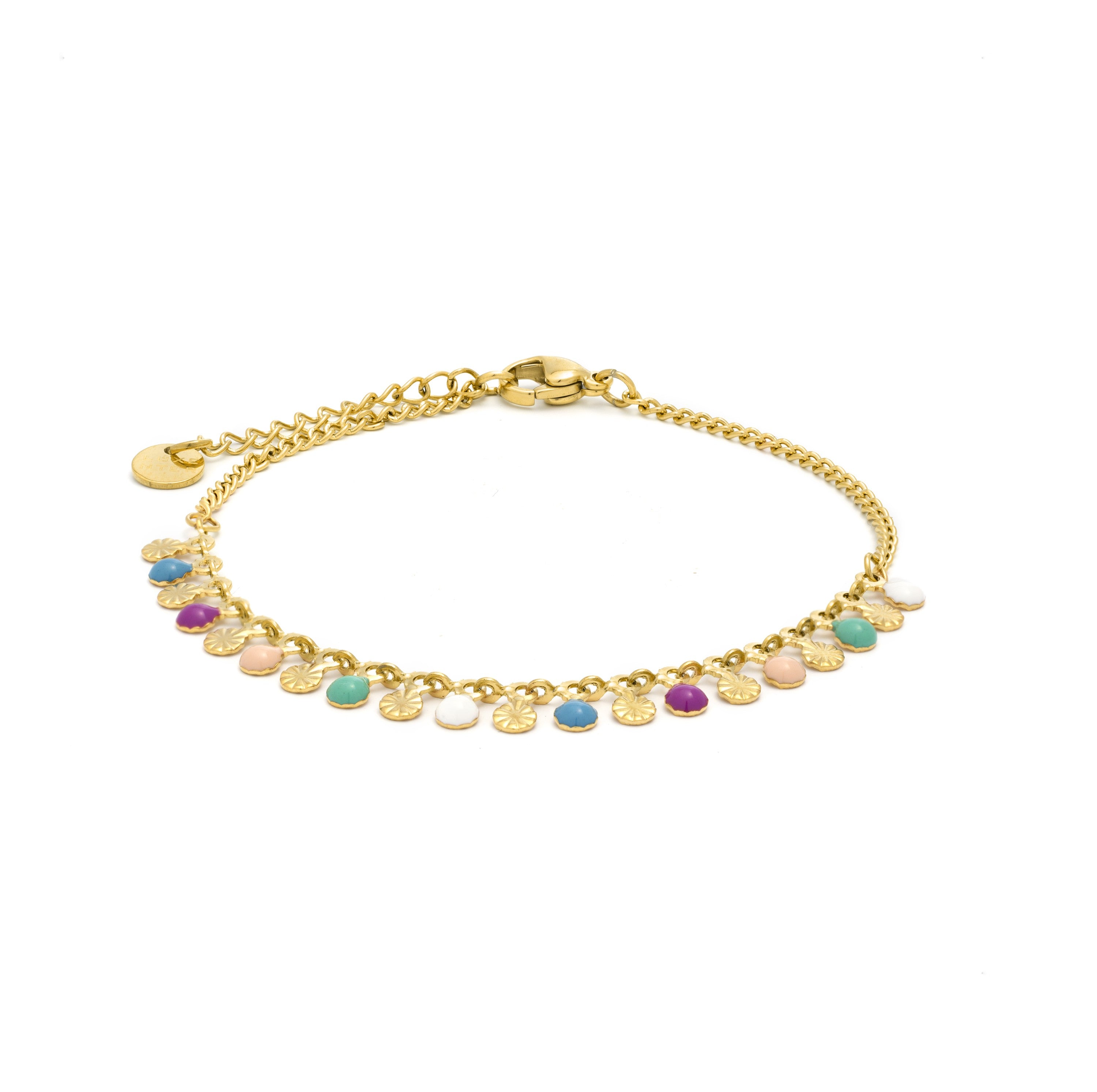 Pulsera de acero Haraim acabada en oro amarillo de 18k. El estilo Boho es una estética de espíritu libre que mezcla diferentes culturas y expresiones artísticas en un estilo ecléctico con énfasis en los elementos orgánicos y la naturaleza.