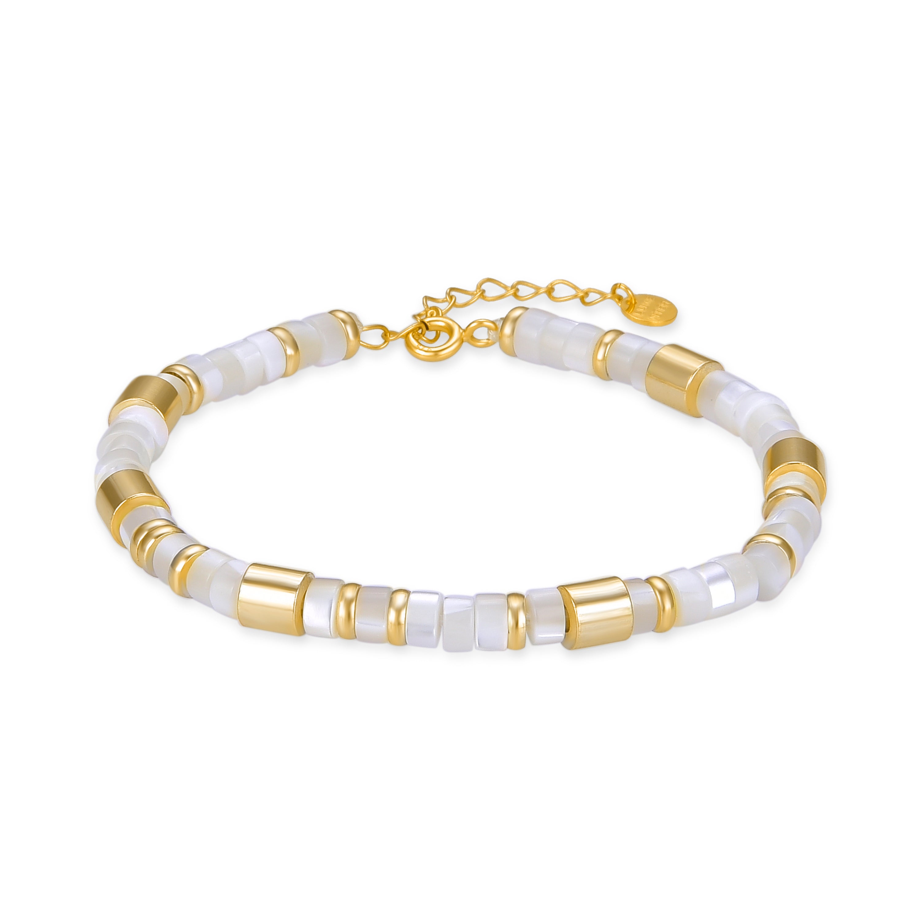 Pulsera de Plata de Ley 925 con Madreperla Blanca acabada en oro amarillo 18K - Wicoy