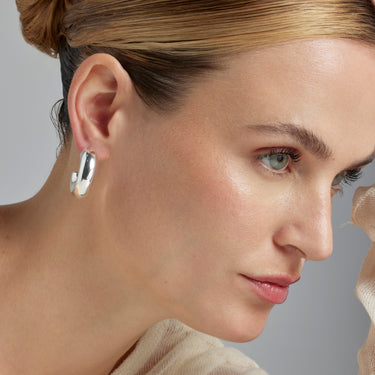 Brincos Meibe com acabamento em prata. África Basic personifica a simplicidade refinada, peças intemporais com linhas suaves e o brilho adicional das zircónias. Joias básicas e despretensiosas que são perfeitas para o uso diário, mas que também funcionam em ocasiões especiais.