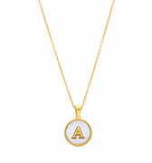 Colar Alphabet de Madrepérola Branca com acabamento em ouro amarelo 18K. O alfabeto transformado em joia. A nossa coleção de letras inclui todas as iniciais do alfabeto, tornando estas joias o amuleto pessoal ideal para o seu dia a dia ou o presente perfeito para essa pessoa especial.