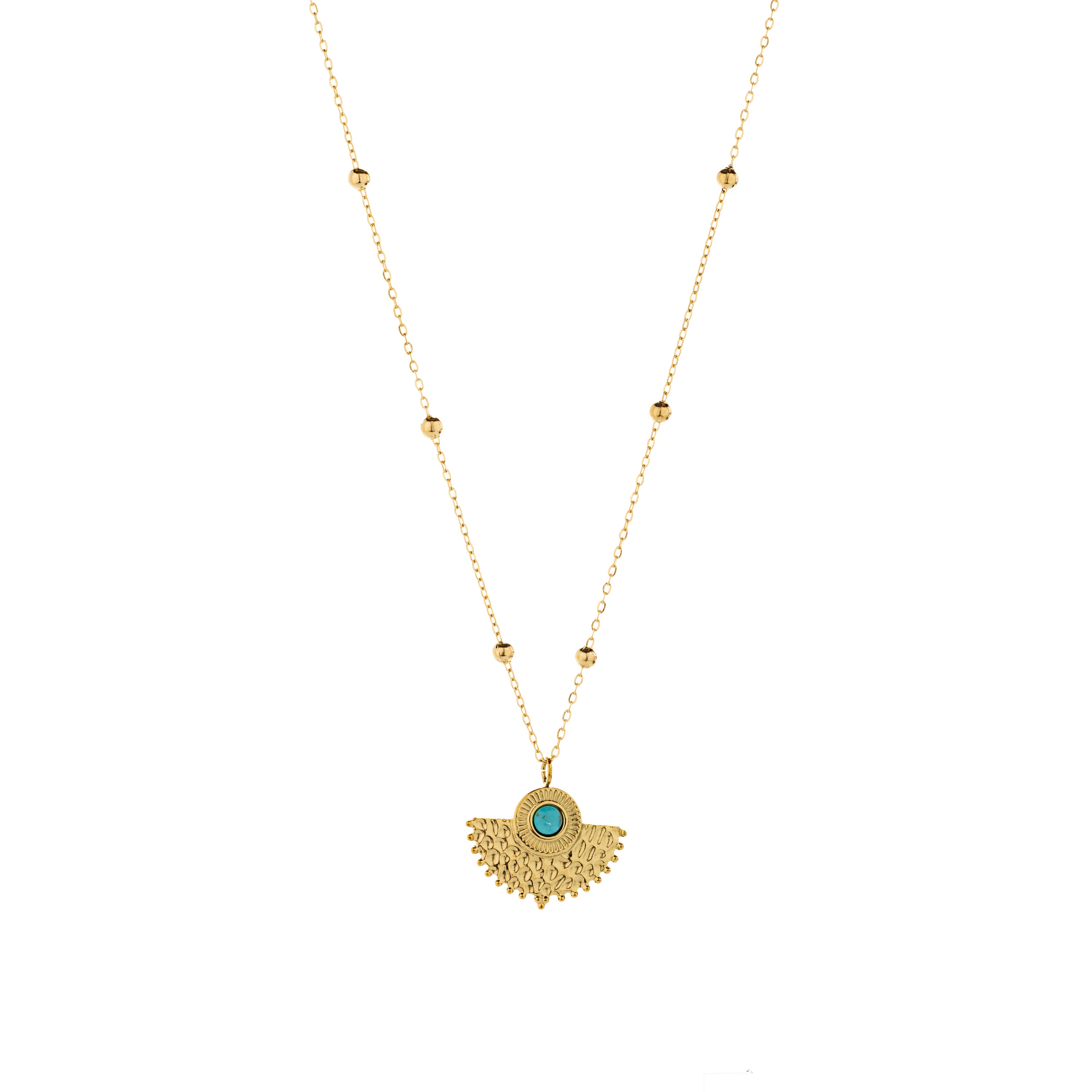 Colar de turquesa acabado em ouro amarelo 18K - Kumora