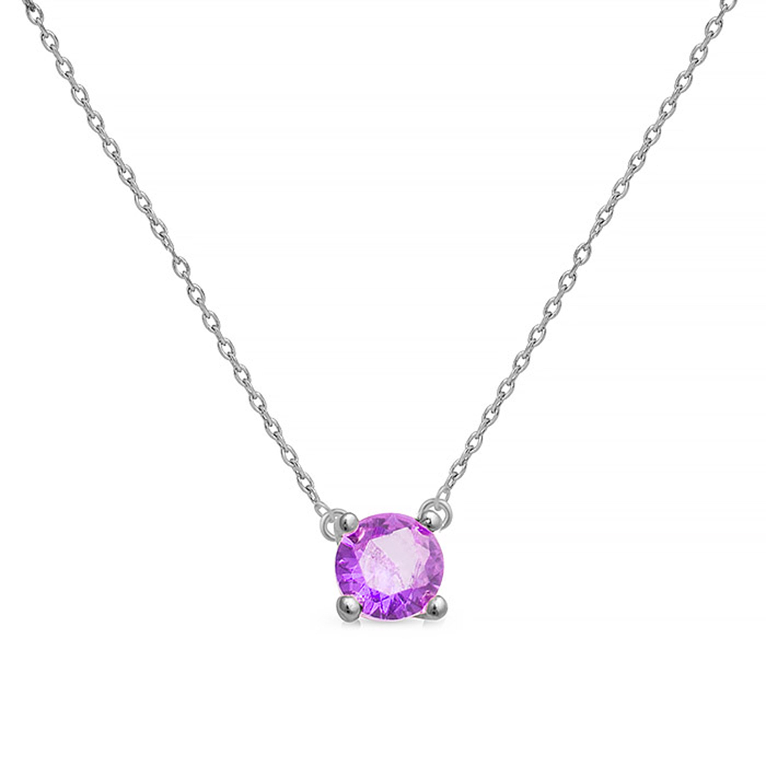 Colar de Prata de Lei 925 com Zircónia Ametista acabamento em ródio - Otieno